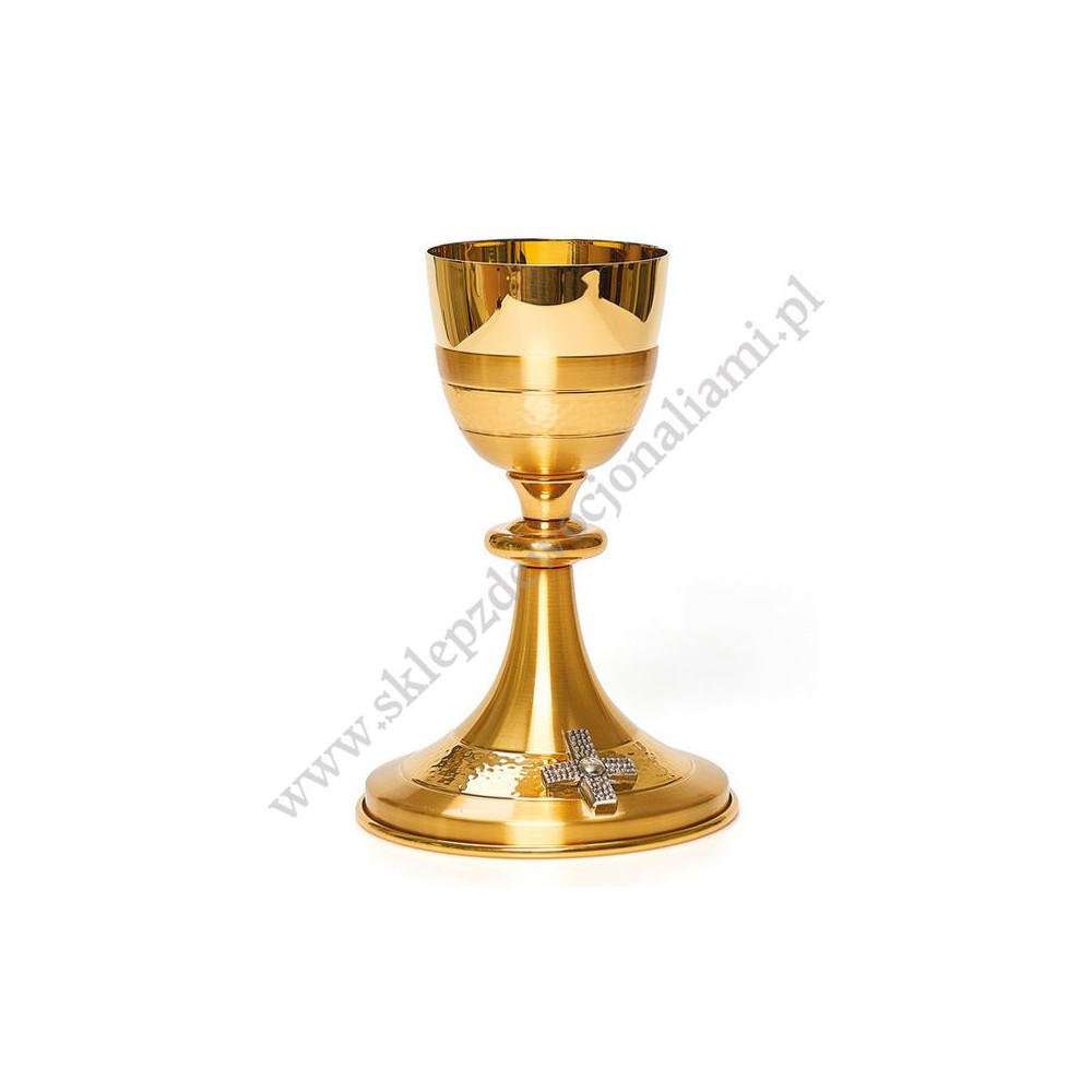 Kielich mszalny. Galwanizowany złotem satynowanym, zdobienia młotkowane.