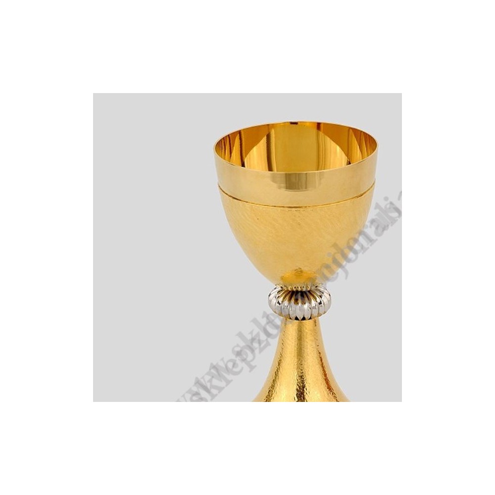 Kielich liturgiczny mosiężny ze zdobionym, srebrnym nodusem