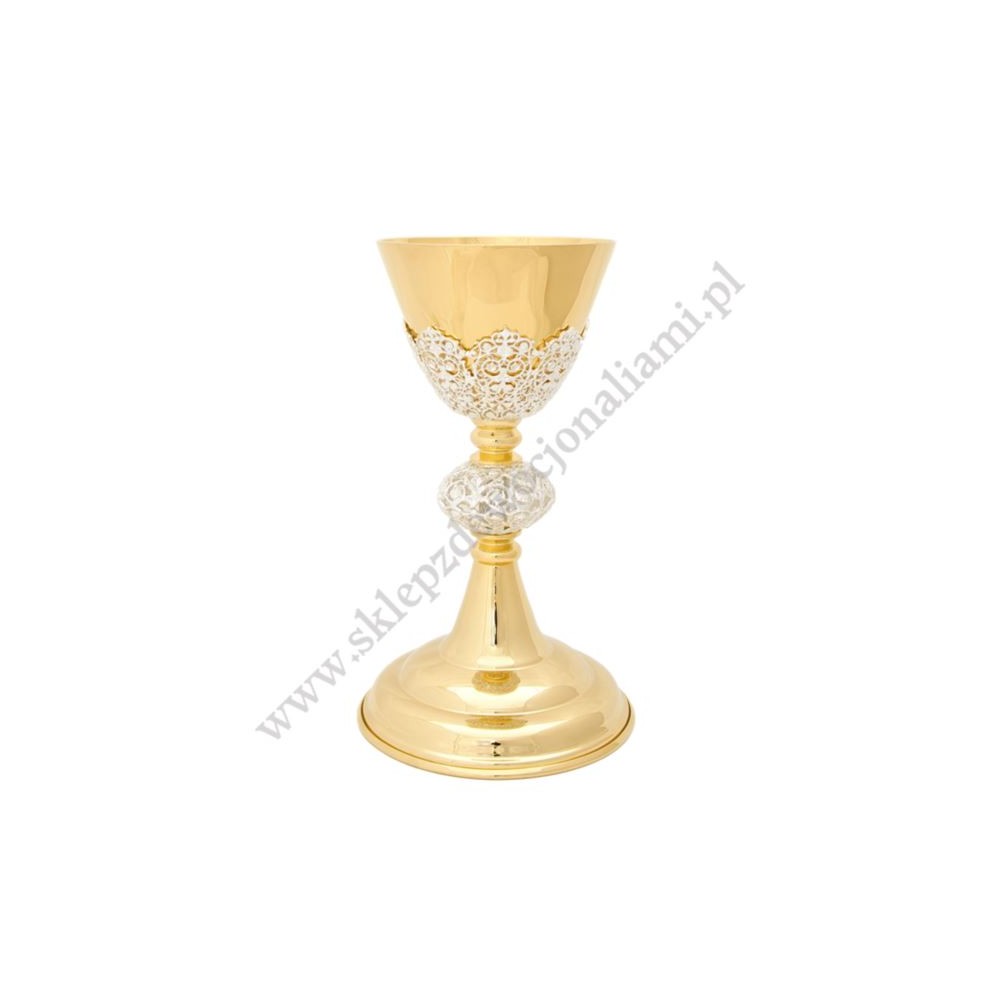 Kielich mosiężny, pozłacany o wysokości 22 cm