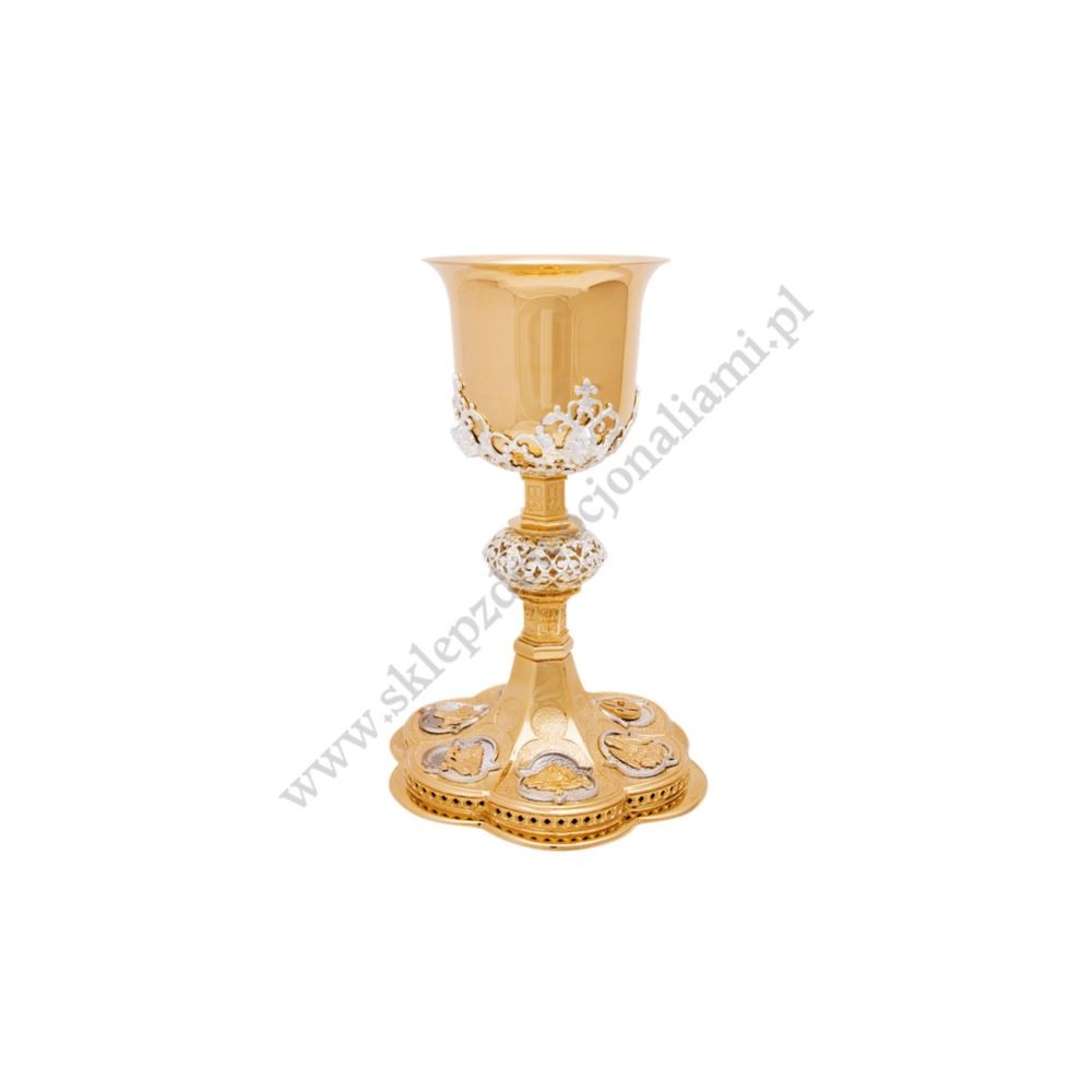 Kielich mosiężny, pozłacany o wsyokości 22 cm