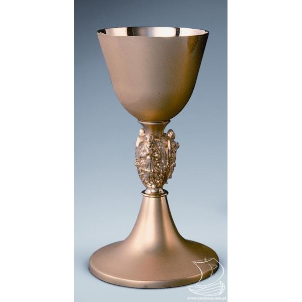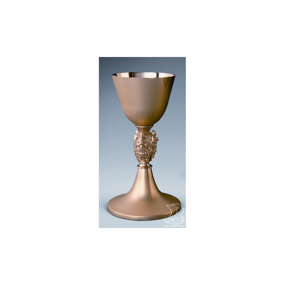 Klielich mosiężny, pozłacany o wysokości 21 cm.