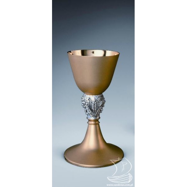 Kielich mosiężny, pozłacany o wysokości 20 cm