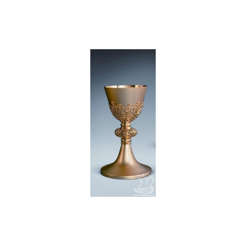 Kielich mosiężny, pozłacany o wysokości 21 cm.