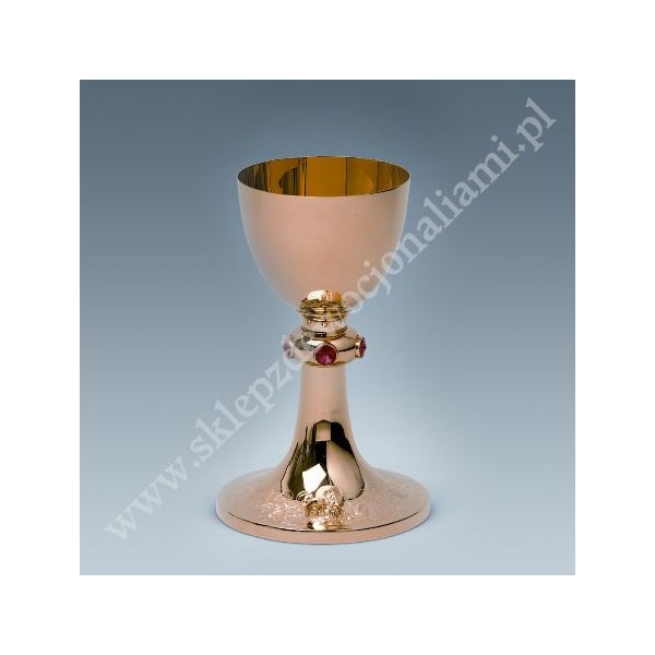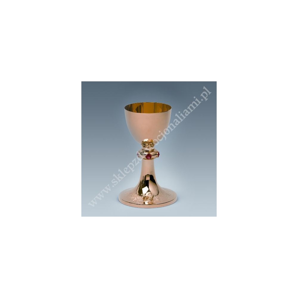 Kielich mosiężny, pozłacany o wysokości 24 cm.