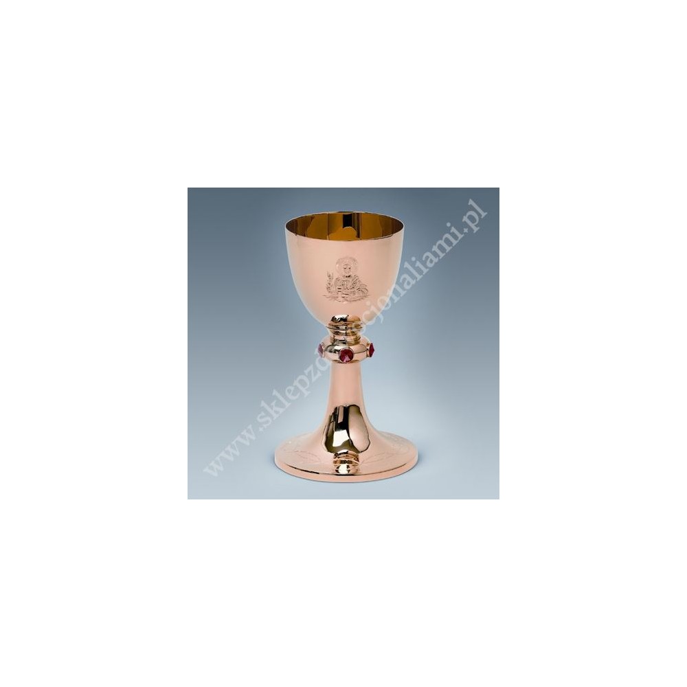 Kielich mosiężny, pozłacany o wysokości 24 cm.