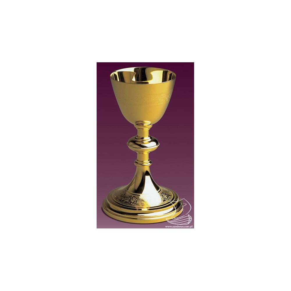 Kielich mosiężny, pozłacany, zdobiony grawerem