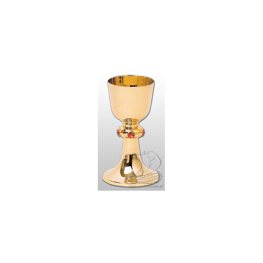 Kielich mosiężny, pozłacany o wysokości 21 cm.