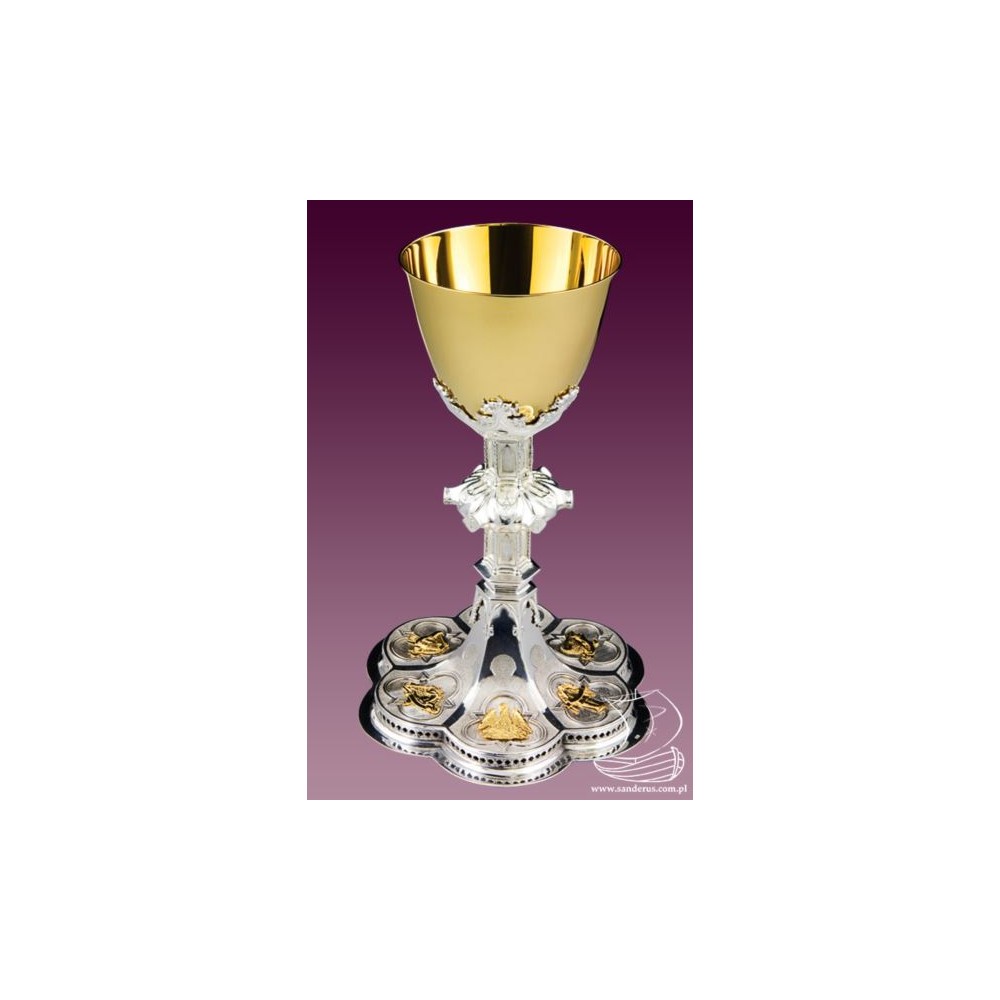 Kielich mosieżny, pozłacany z elementami srebrnymi