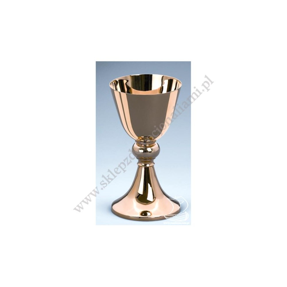 Kielich mszalny mosiężny, pozłacany o wysokości 18 cm.
