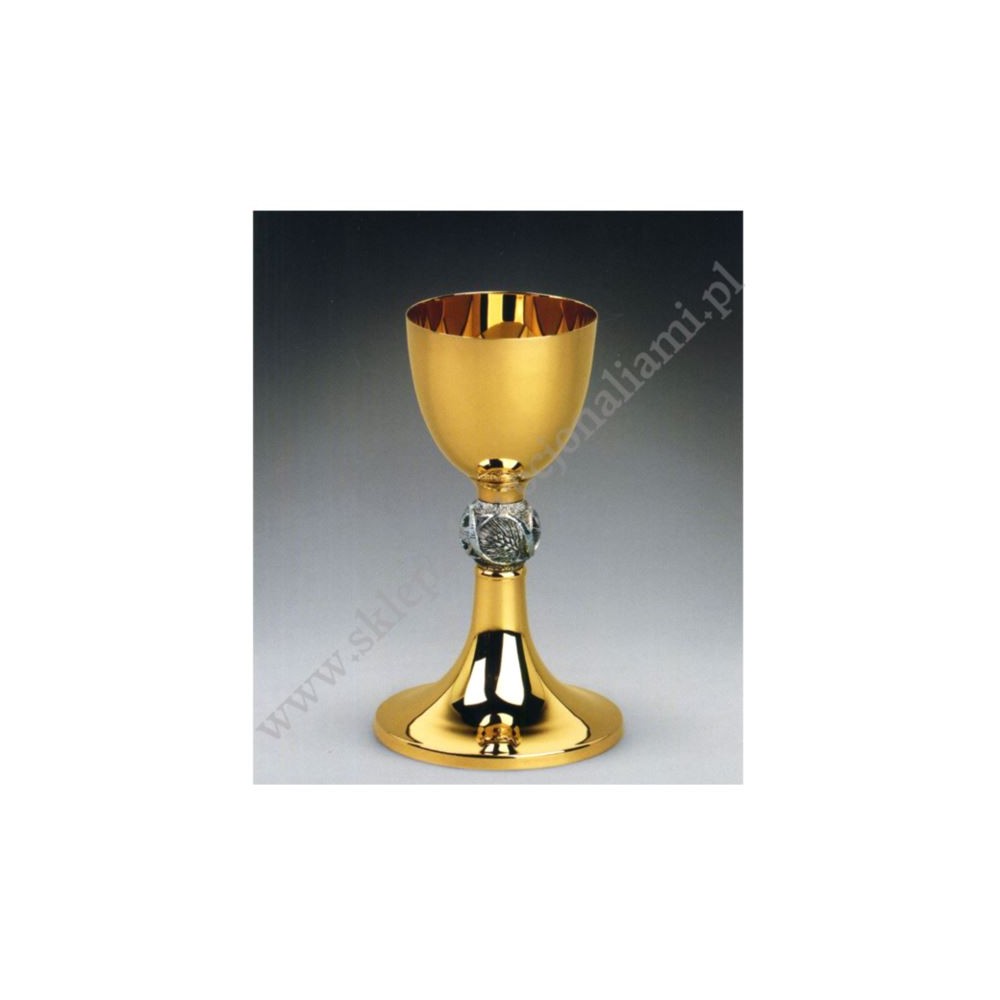 Kielich mszalny mosiężny, pozłacany o wysokości 26 cm.
