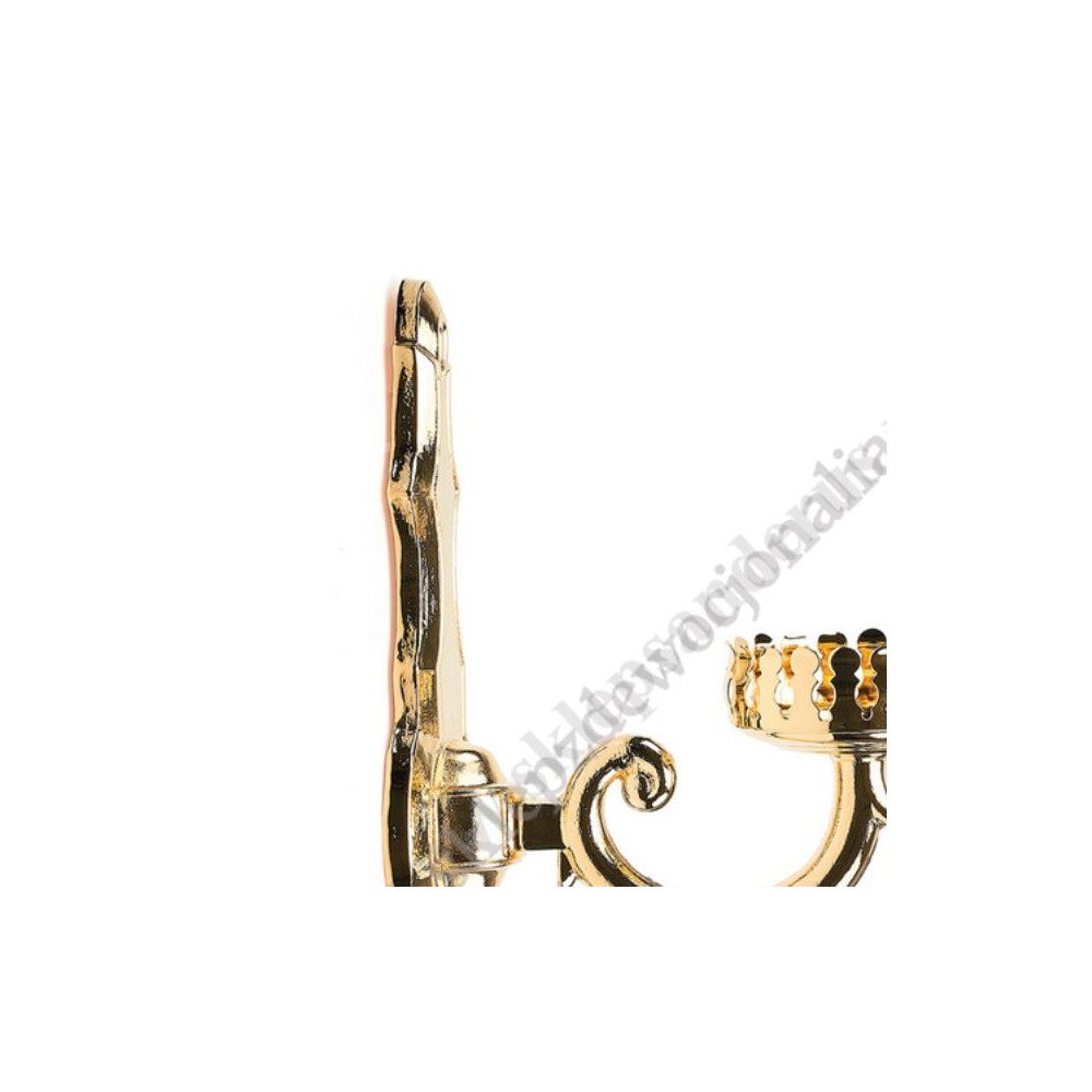 Lampa kinkiet, tzw. zacheuszka z uchwytem do pojemnika na olej. Odlew mosiężny, pozłacany.