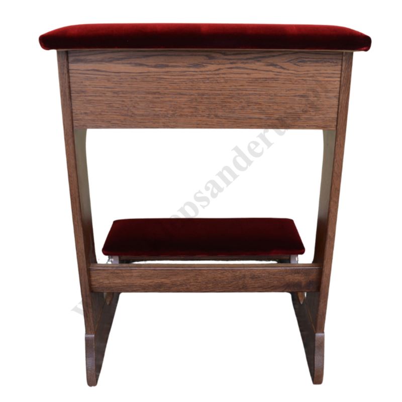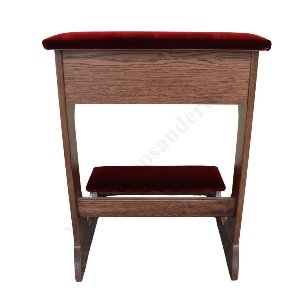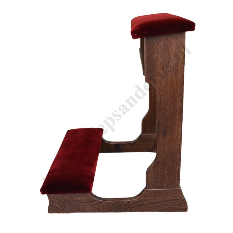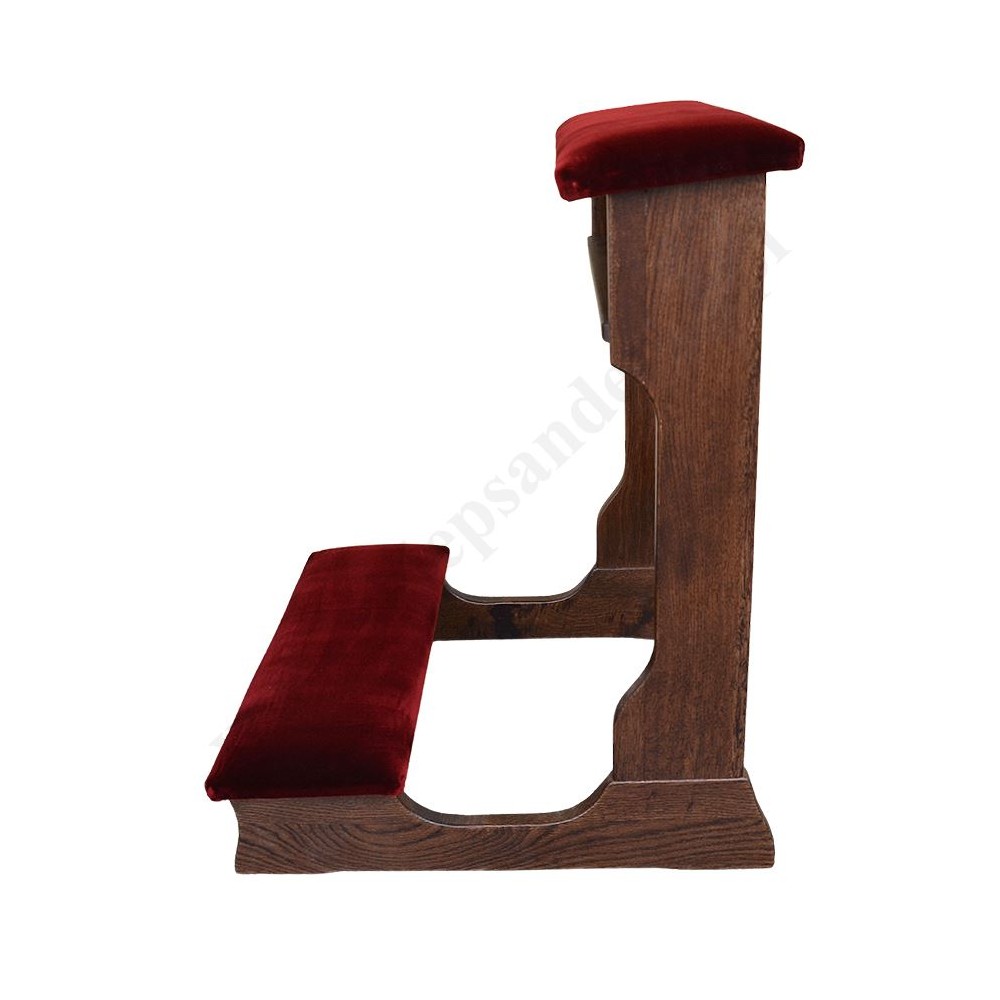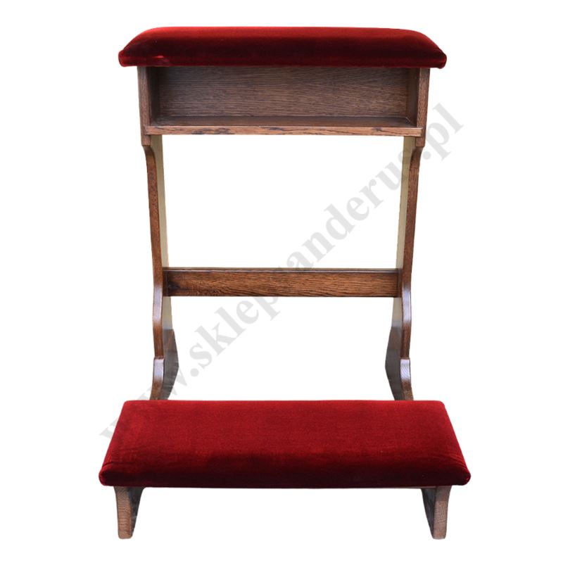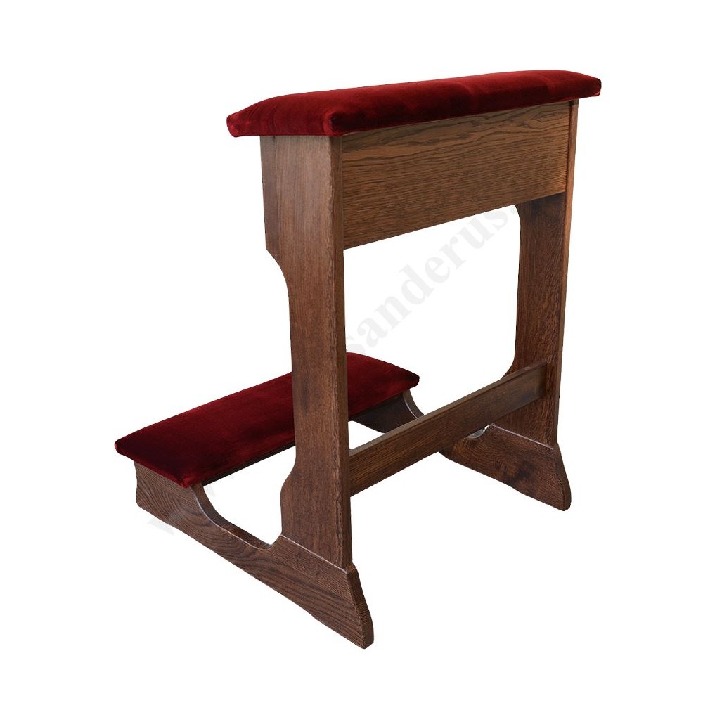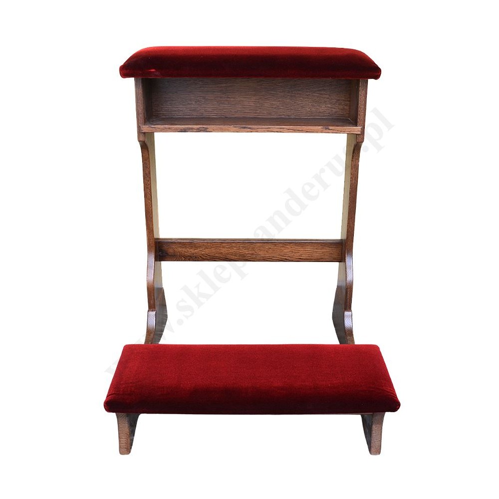 Klęcznik drewniany - dębowy w kolorze ciemny brąz z tapicerowanym podłokietnikiem i klęcznikiem.