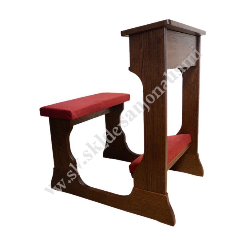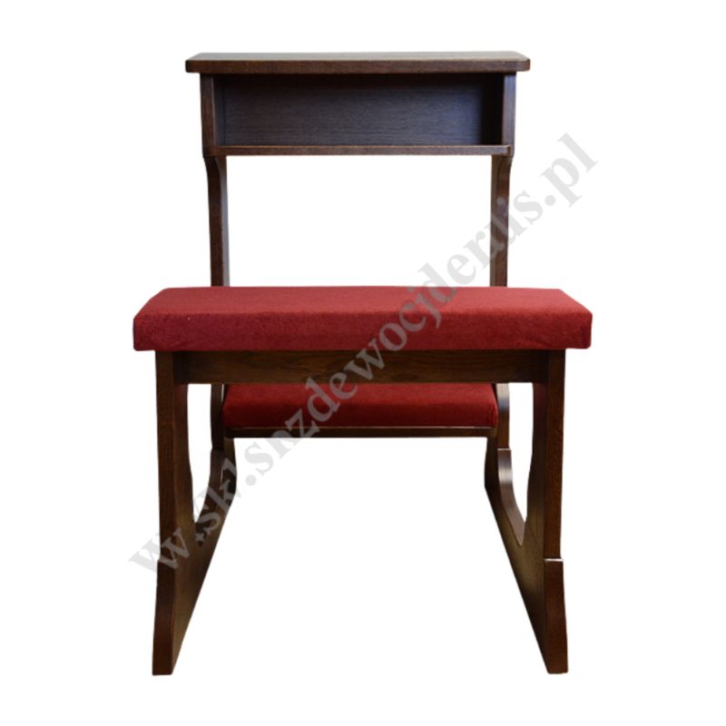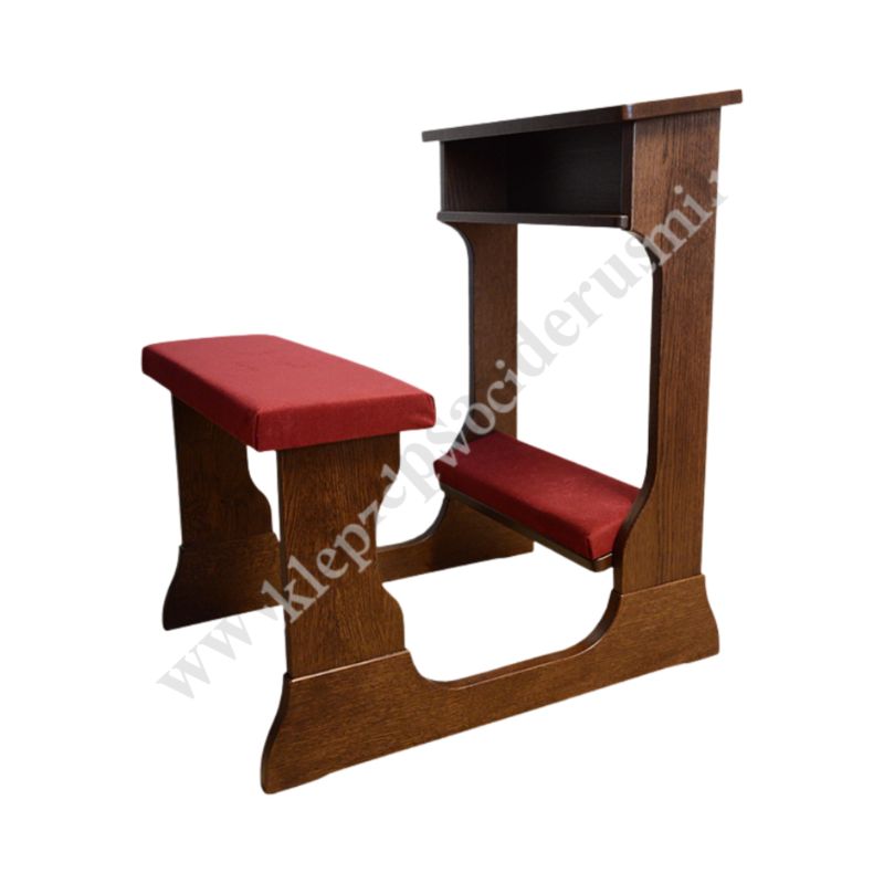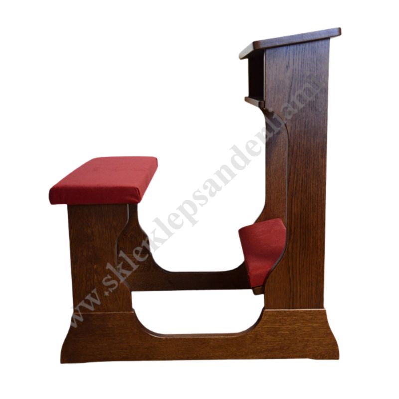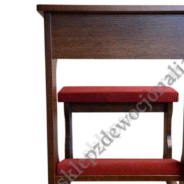 Klęcznik drewniany z siedziskiem i tapicerką - dębowy w kolorze ciemny brąz.