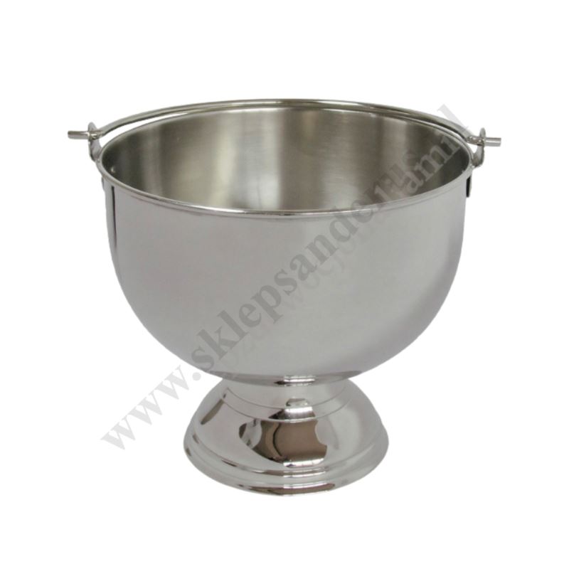 Kociołek na wodę święconą wykonany ze stali nierdzewnej.