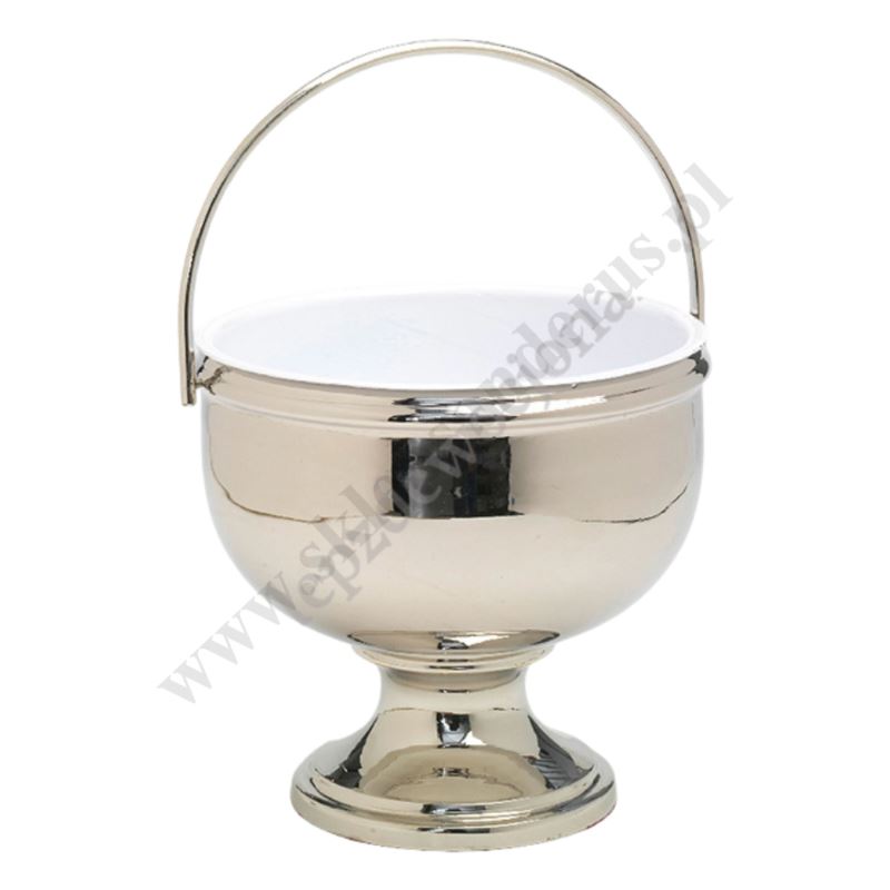 Niklowany kociołek na wodę święconą o wysokości 17 cm, wkładka wyciągana.