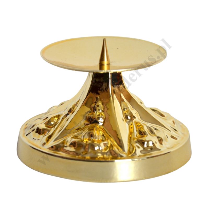 Lichtarzyk wykonany z mosiądzu o wysokości 5 cm, średnica podstawy 8.5 cm, średnica talerzyka pod świece 6 cm.
