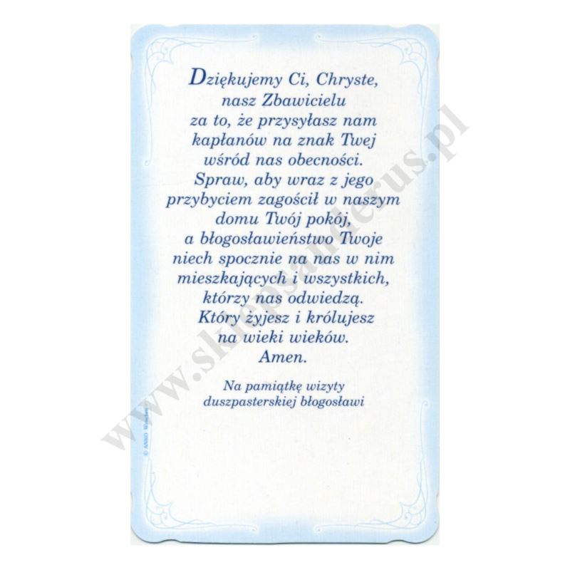 Obrazek kolędowy lakierowany oraz brokatowany wymiarach 6.2 cm x 10.4 cm. Na rewersie obrazka pamiątkowy tekst. W paczce znajduje się 100 szt. obrazków jednego wzoru. Sprzedaż na paczki po 100 szt.