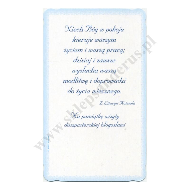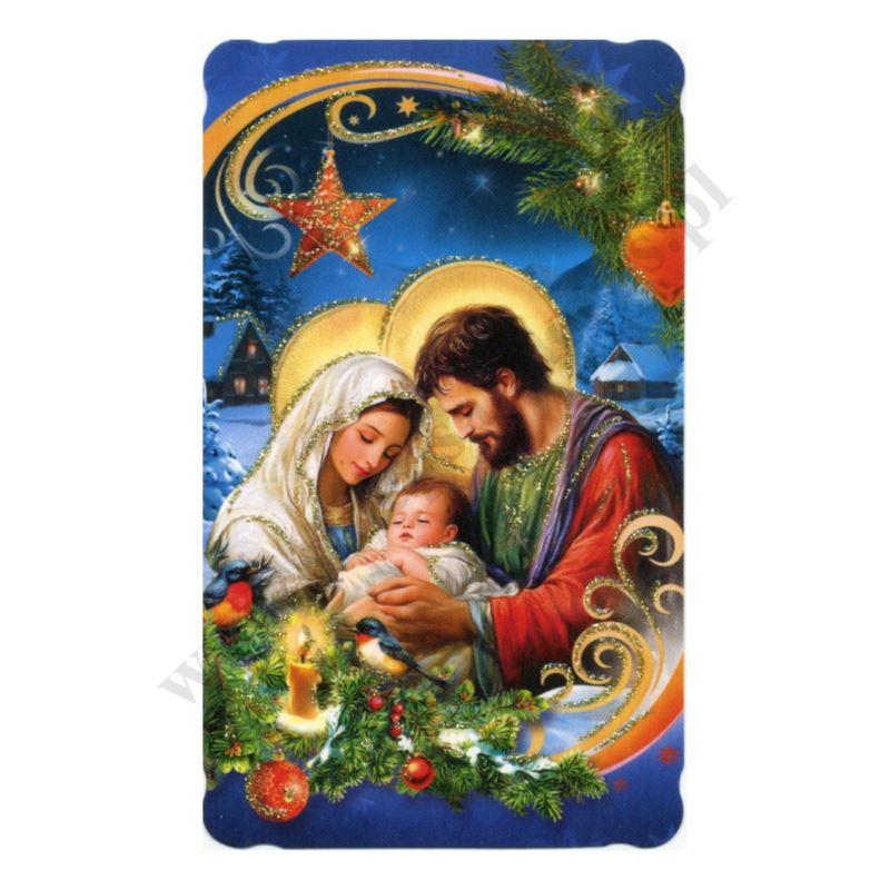 Obrazek kolędowy lakierowany oraz brokatowany wymiarach 6.2 cm x 10.4 cm. Na rewersie obrazka pamiątkowy tekst. W paczce znajduje się 100 szt. obrazków jednego wzoru. Sprzedaż na paczki po 100 szt.