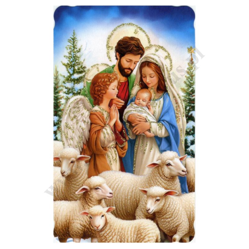 Obrazek kolędowy lakierowany oraz brokatowany wymiarach 6.2 cm x 10.4 cm. Na rewersie obrazka pamiątkowy tekst. W paczce znajduje się 100 szt. obrazków jednego wzoru. Sprzedaż na paczki po 100 szt.