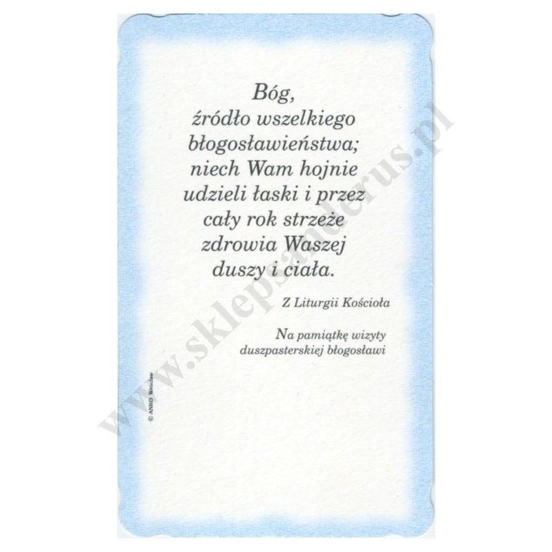 Obrazek kolędowy lakierowany oraz brokatowany wymiarach 6.2 cm x 10.4 cm. Na rewersie obrazka pamiątkowy tekst. W paczce znajduje się 100 szt. obrazków jednego wzoru. Sprzedaż na paczki po 100 szt.
