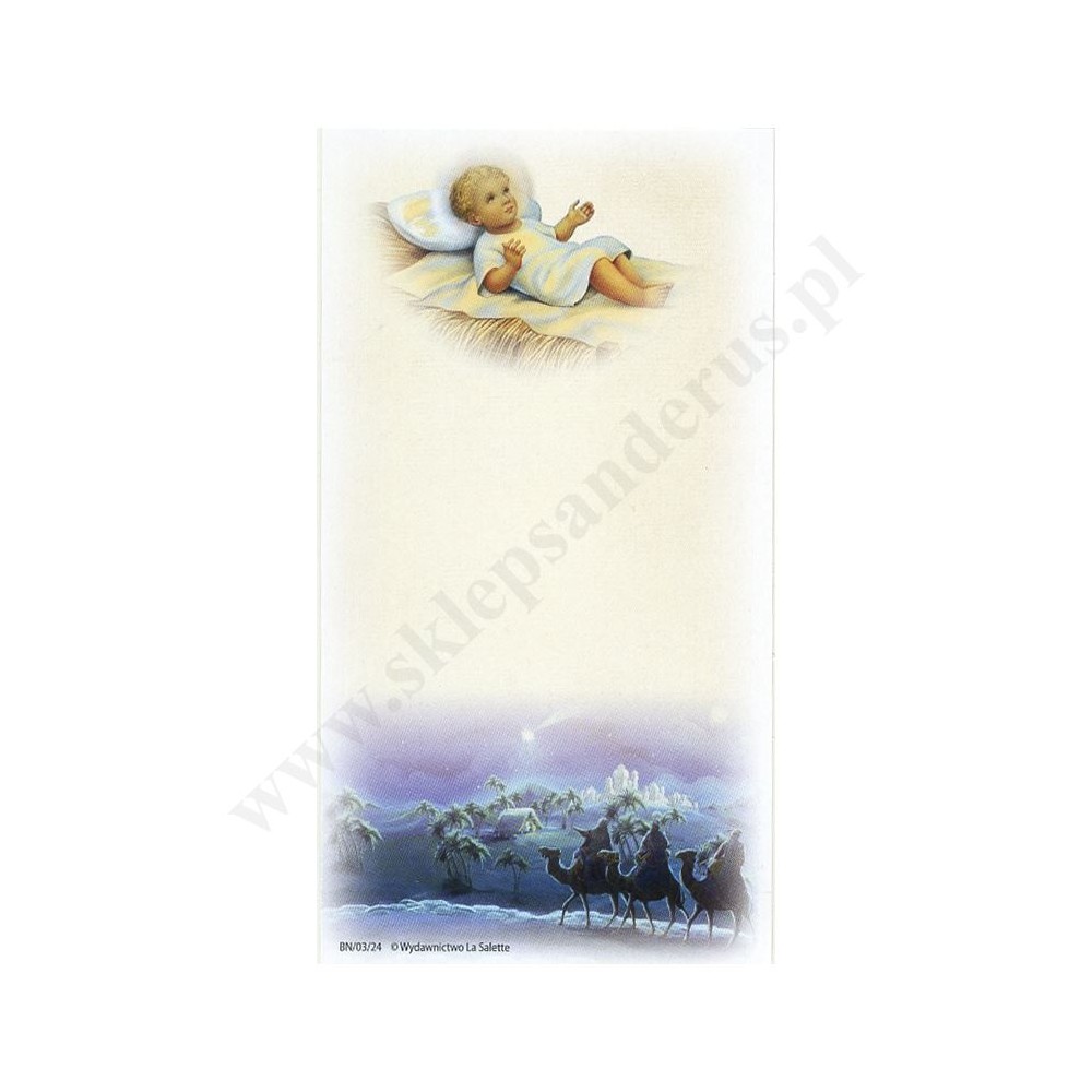 Obrazek kolędowy lakierowany o wymiarach 7 x 13 cm, papier kredowy 250g. Brak pamiątkowego tekstu na rewersie obrazka. W paczce znajduje się 100 szt. obrazków jednego wzoru. Sprzedaż na paczki po 100 szt.