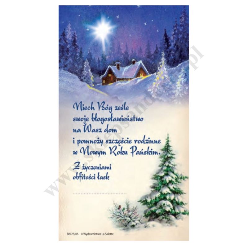 Obrazek kolędowy lakierowany o wymiarach 7 x 13 cm, na rewersie obrazka pamiątkowy tekst.