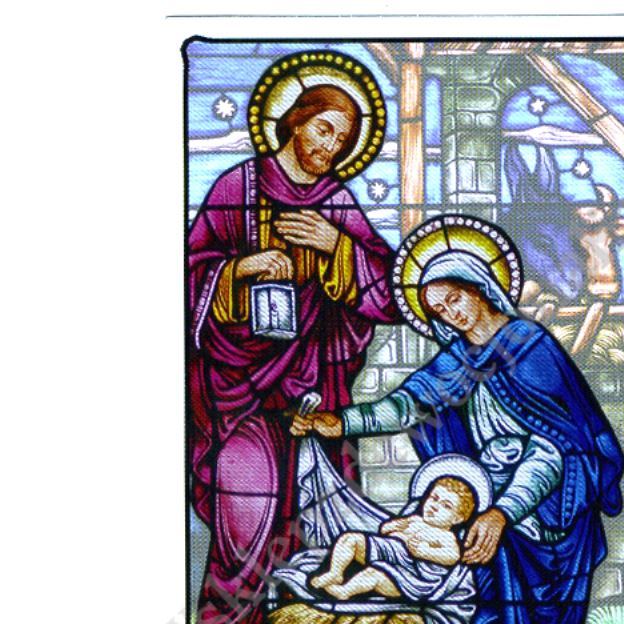 Obrazek kolędowy z połyskiem metalicznym w formacie 6.7 x 10.2 cm na rewersie obrazka pamiątkowy tekst.