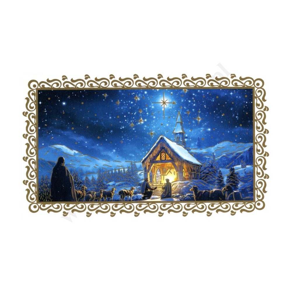 Obrazek kolędowy lakierowany wymiarach 11 cm x 6.5 cm, na rewersie obrazka tekst błogosławieństwa kolędowego. Sprzedaż w paczkach po 100 szt.