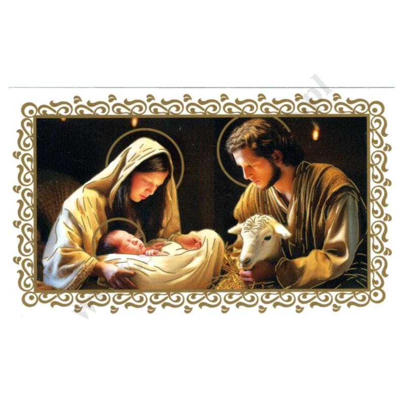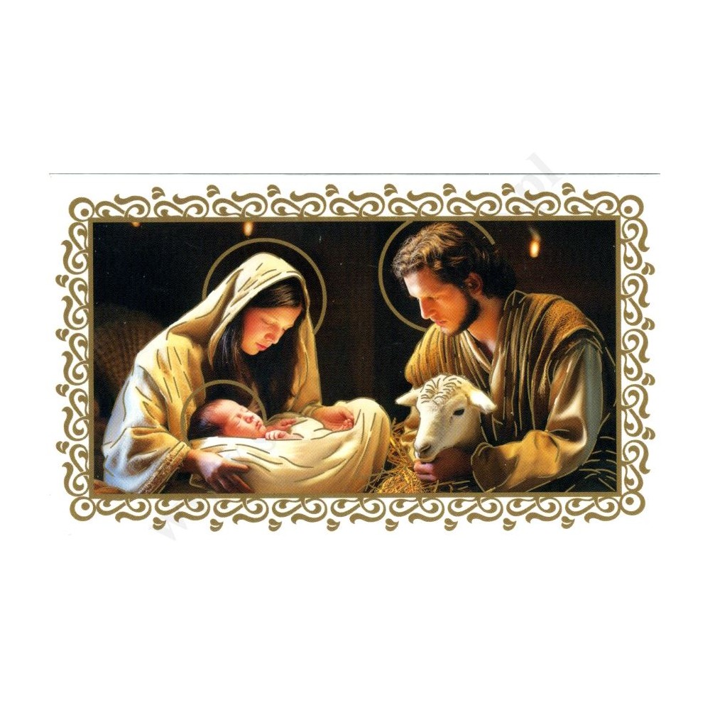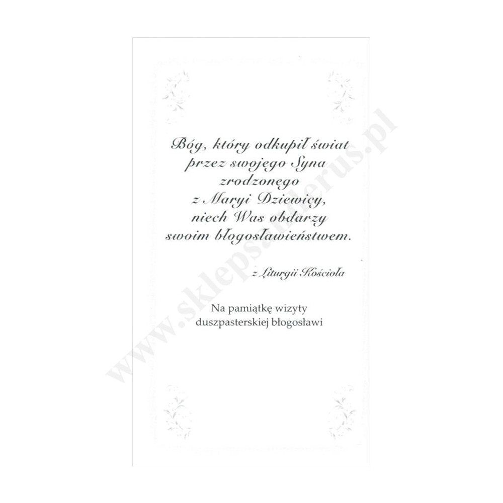 Obrazek kolędowy lakierowany wymiarach 11 cm x 6.5 cm, na rewersie obrazka tekst błogosławieństwa kolędowego. Sprzedaż w paczkach po 100 szt.