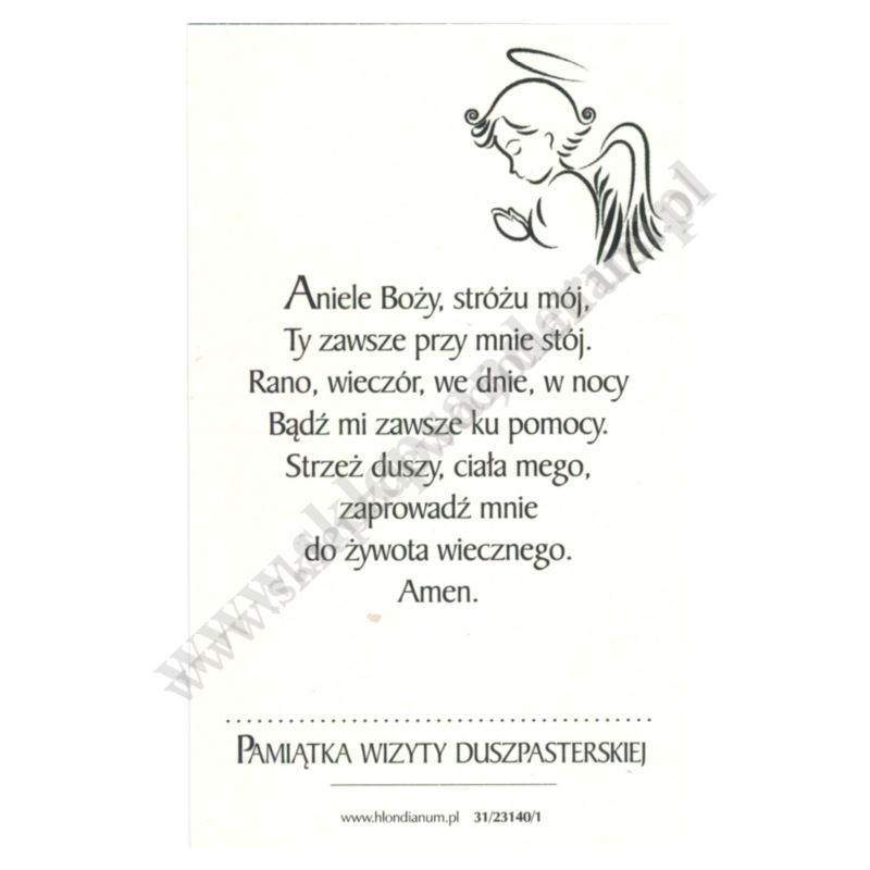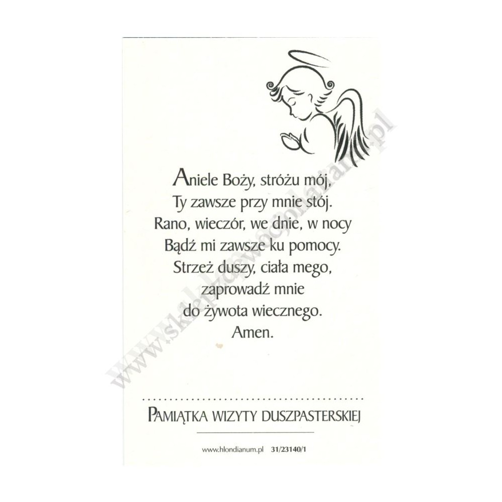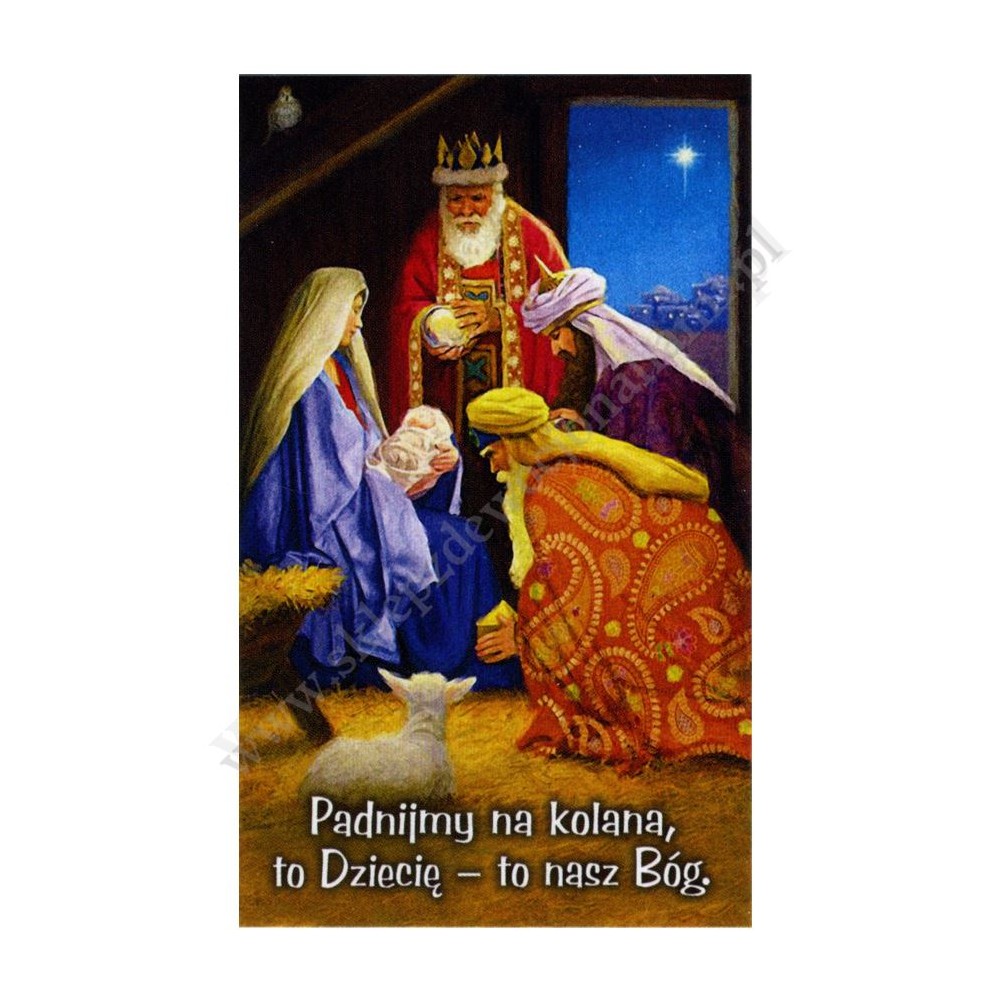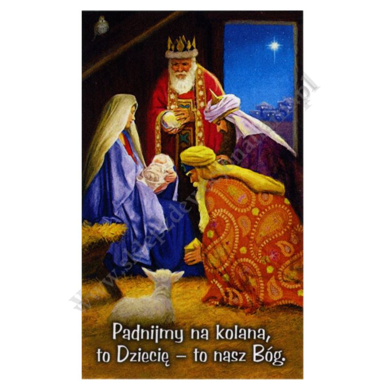 Obrazek kolędowy wykonany na trwałym foliowanym kartonie w formacie 6 x 10 cm, na rewersie modlitwa do Aniła Stróża, sprzedaż na paczki po 100 szt.