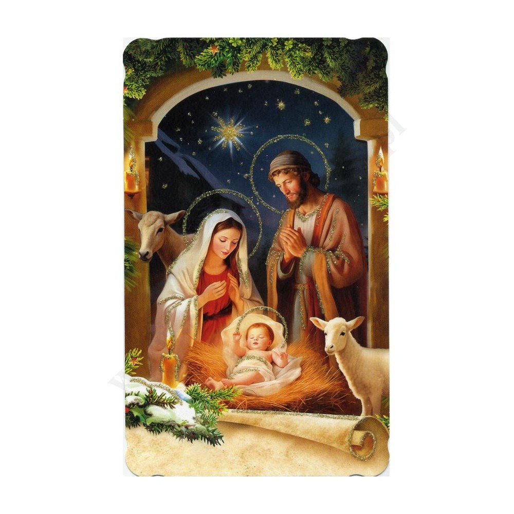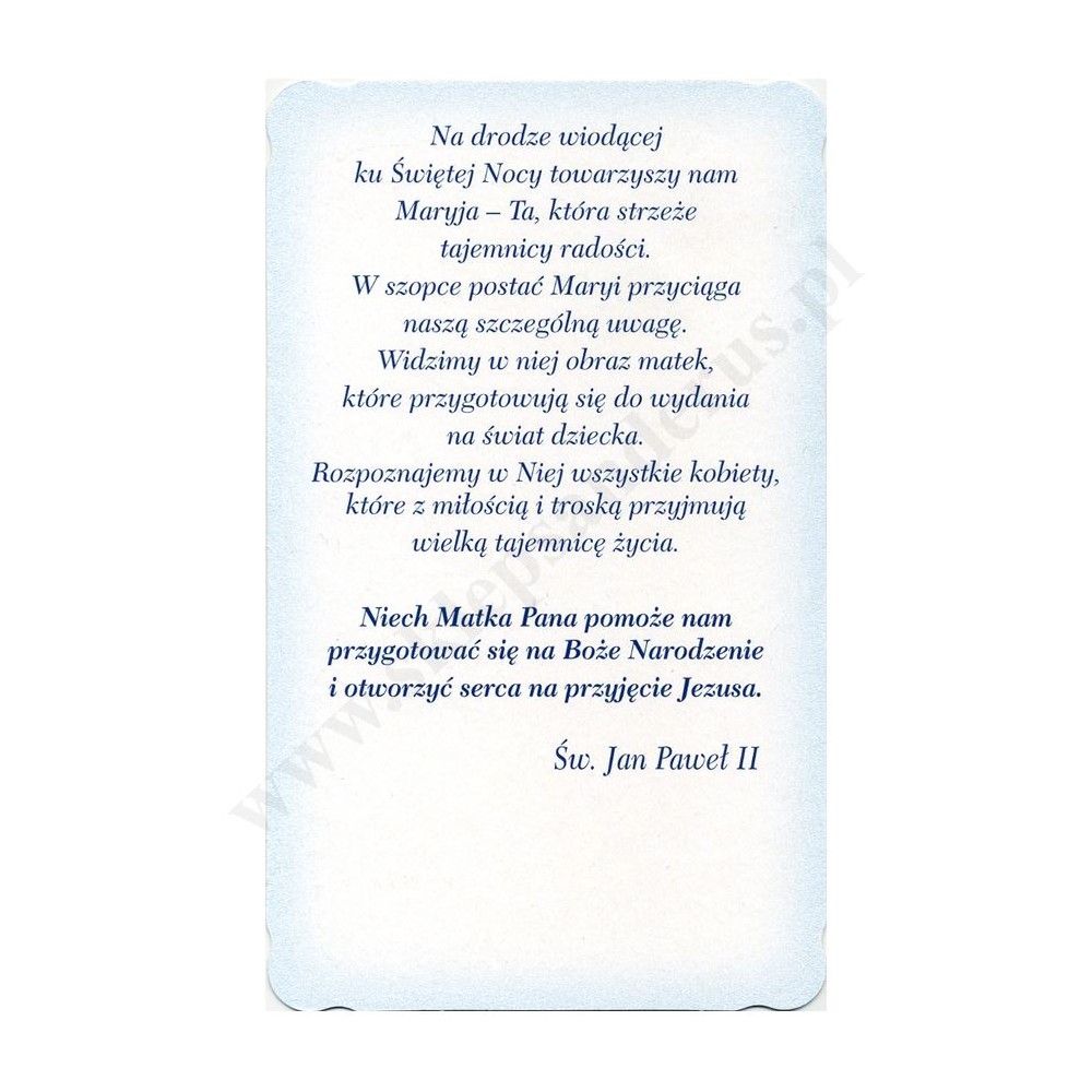 Obrazek kolędowy lakierowany oraz brokatowany w formacie pocztówki wymiarach 8.9 cm x 14.8 cm.