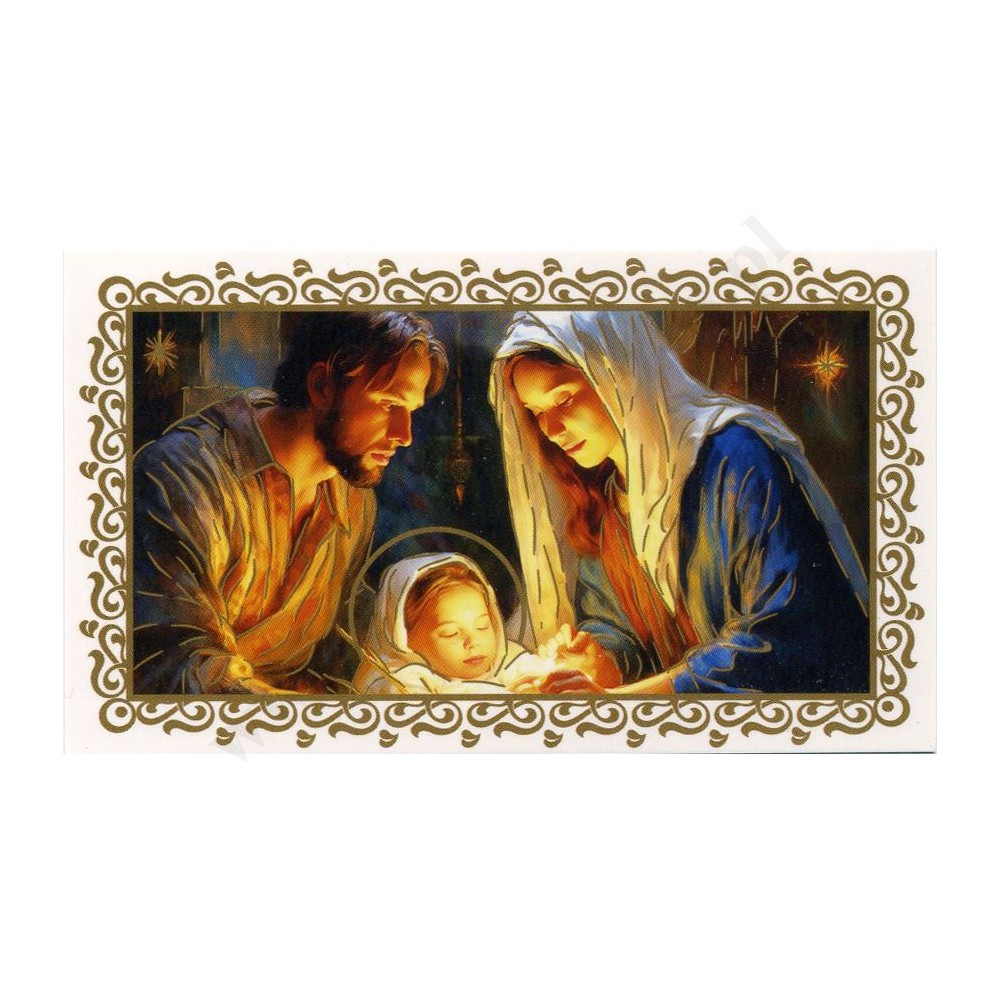 Obrazek kolędowy lakierowany o wymiarach 11 x 6.5 cm. Na rewersie obrazka pamiątkowy tekst. W paczce znajduje się 100 szt. obrazków jednego wzoru. Sprzedaż na paczki po 100 szt.