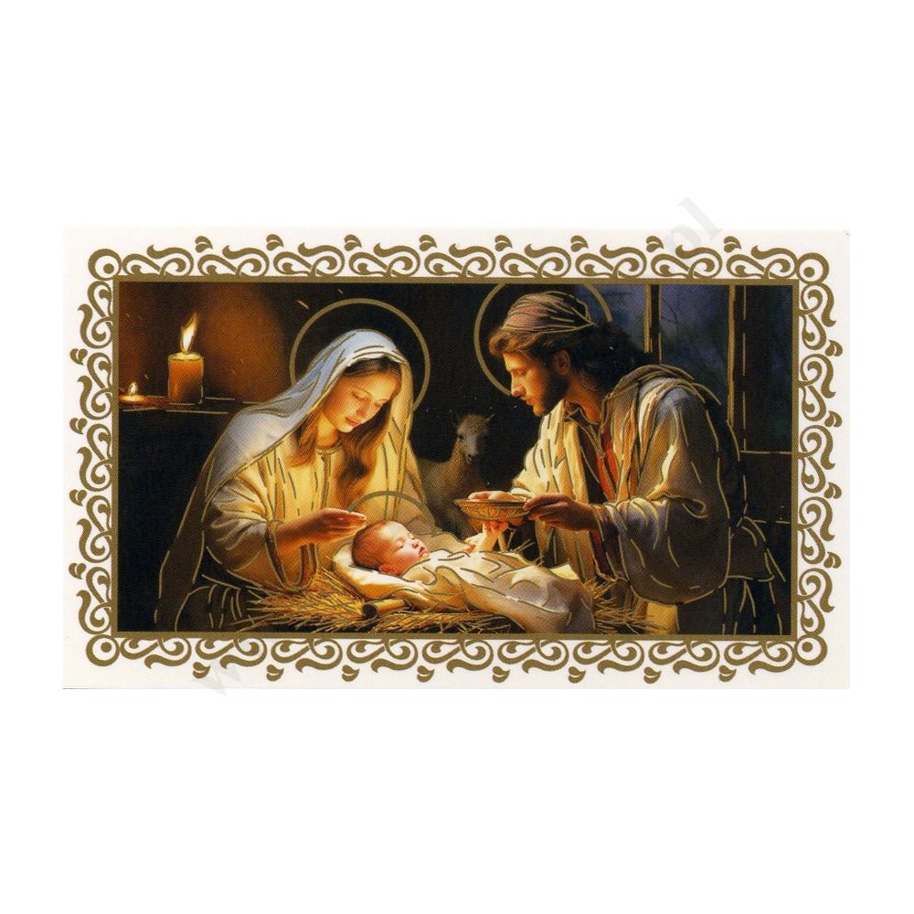 Obrazek kolędowy lakierowany o wymiarach 11 x 6.5 cm. Na rewersie obrazka pamiątkowy tekst. W paczce znajduje się 100 szt. obrazków jednego wzoru. Sprzedaż na paczki po 100 szt.