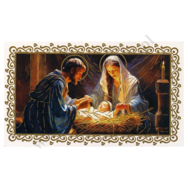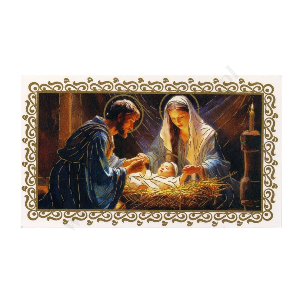 Obrazek kolędowy lakierowany o wymiarach 11 x 6.5 cm. Na rewersie obrazka pamiątkowy tekst. W paczce znajduje się 100 szt. obrazków jednego wzoru. Sprzedaż na paczki po 100 szt.