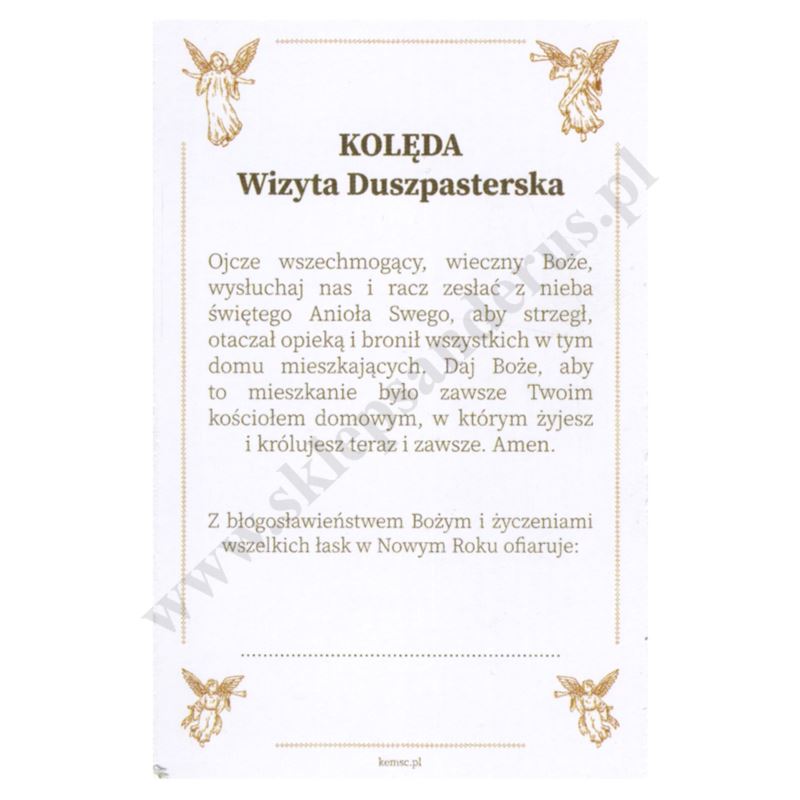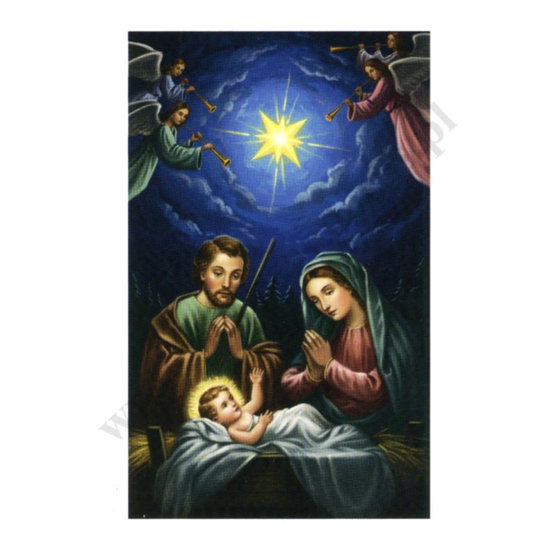 Obrazek kolędowy lakierowany o wymiarach 6.5 x 10 cm. Na rewersie obrazka pamiątkowy tekst. W paczce znajduje się 100 szt. obrazków jednego wzoru. Sprzedaż na paczki po 100 szt.