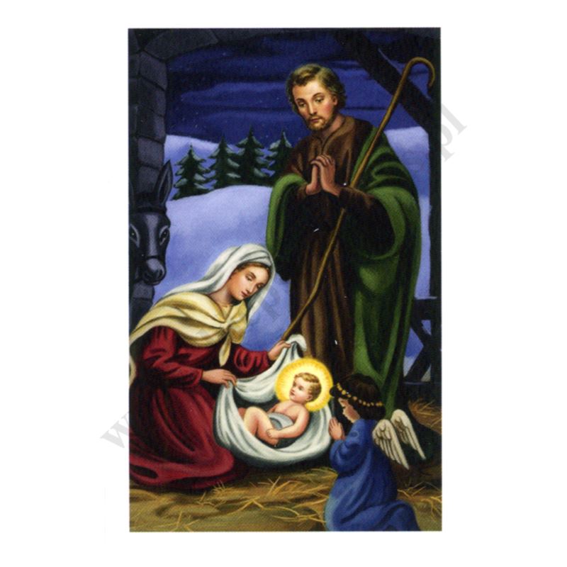 Obrazek kolędowy lakierowany o wymiarach 6.5 x 10 cm. Na rewersie obrazka pamiątkowy tekst. W paczce znajduje się 100 szt. obrazków jednego wzoru. Sprzedaż na paczki po 100 szt.