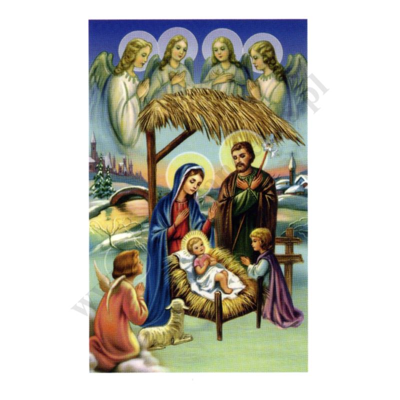 Obrazek kolędowy lakierowany o wymiarach 6.5 x 10 cm. Na rewersie obrazka pamiątkowy tekst. W paczce znajduje się 100 szt. obrazków jednego wzoru. Sprzedaż na paczki po 100 szt.