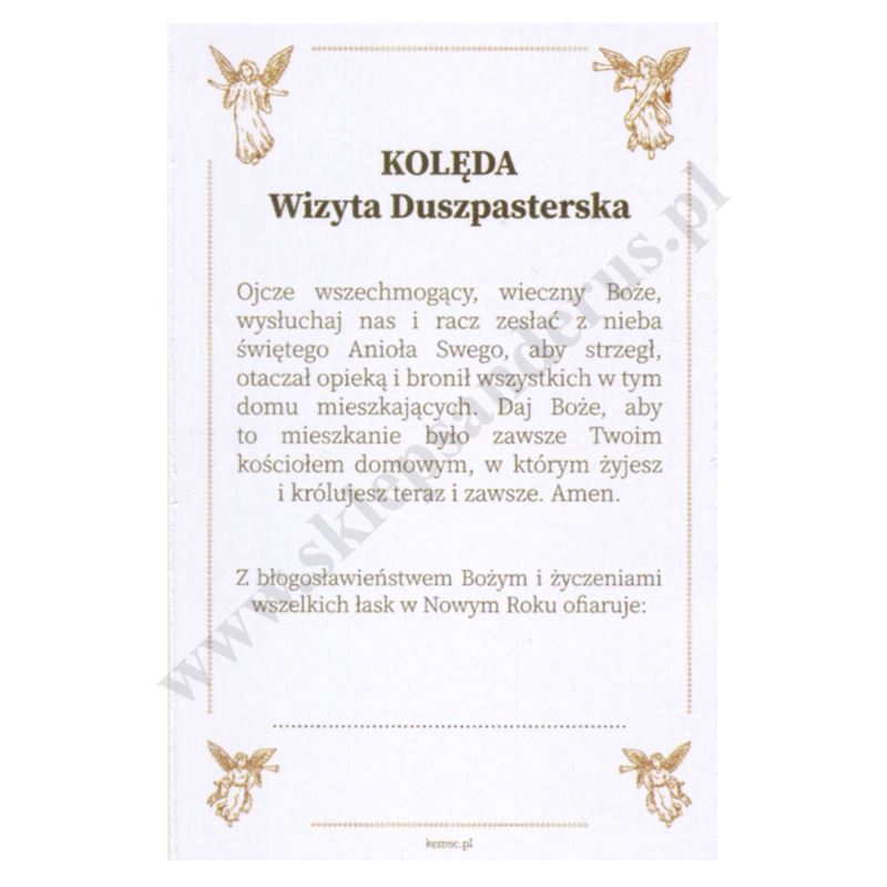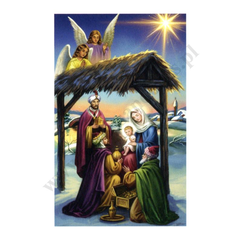 Obrazek kolędowy lakierowany o wymiarach 6.5 x 10 cm. Na rewersie obrazka pamiątkowy tekst. W paczce znajduje się 100 szt. obrazków jednego wzoru. Sprzedaż na paczki po 100 szt.