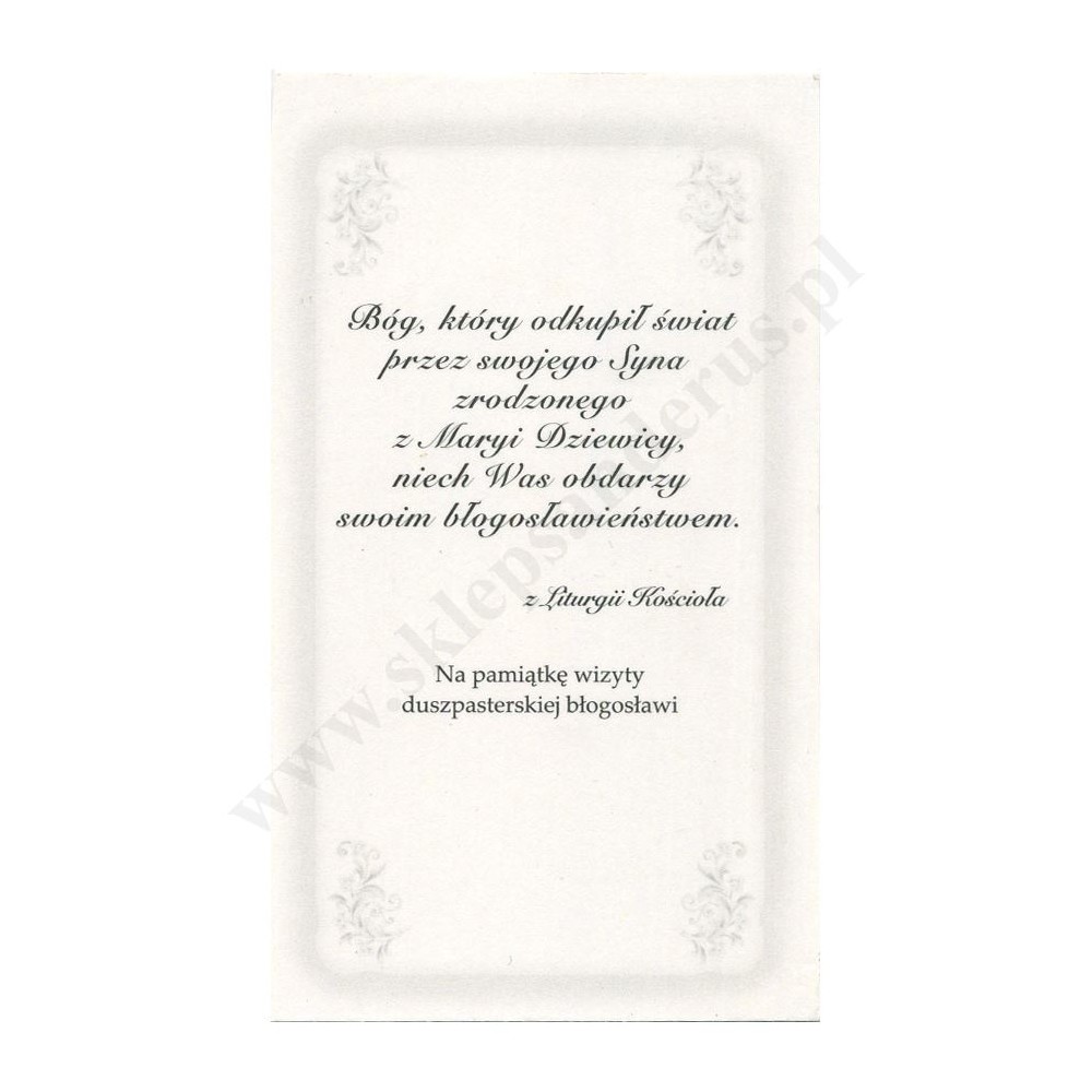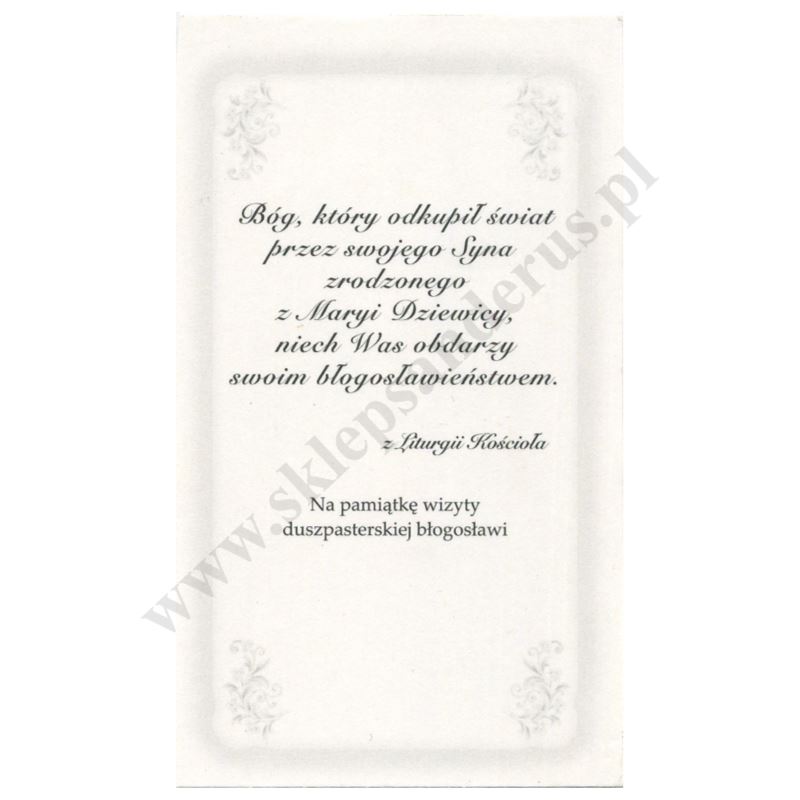 Obrazek kolędowy lakierowany o wymiarach 6.5 x 11 cm. Na rewersie obrazka pamiątkowy tekst. W paczce znajduje się 100 szt. obrazków jednego wzoru. Sprzedaż na paczki po 100 szt.