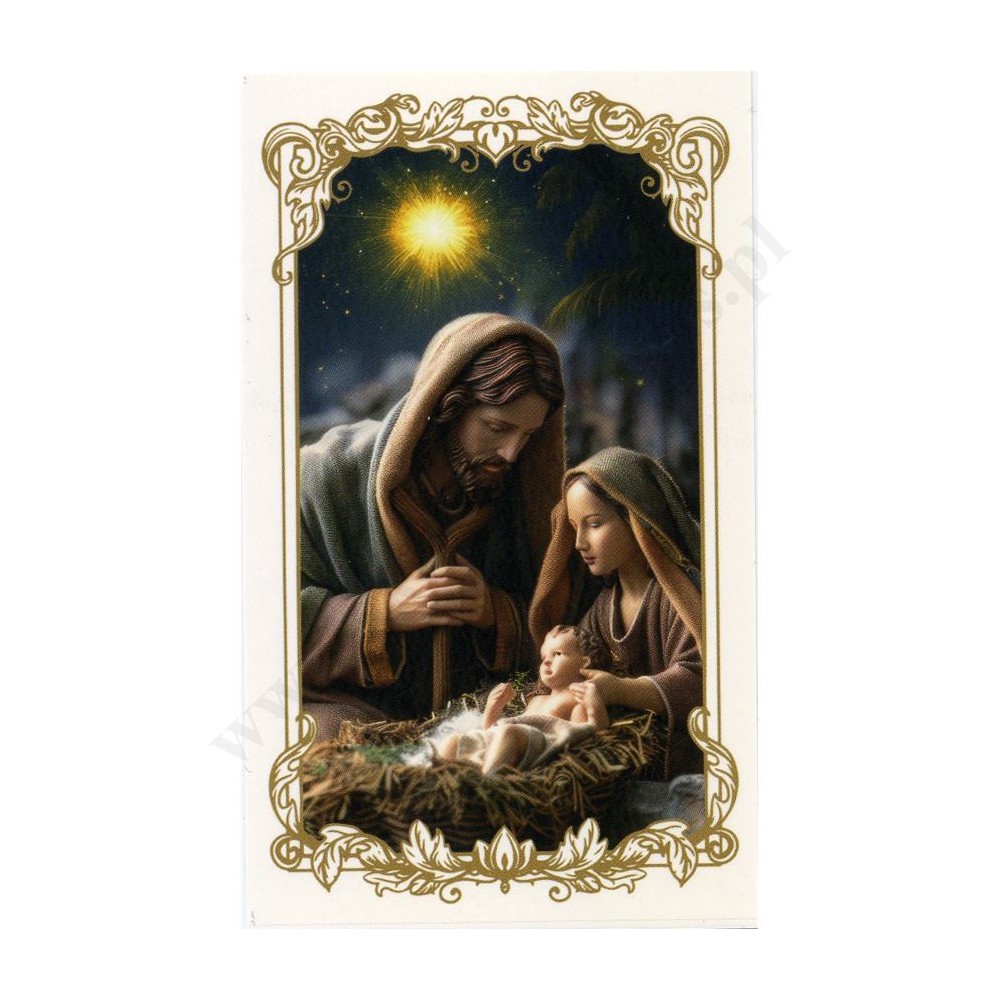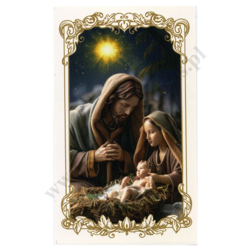 Obrazek kolędowy lakierowany o wymiarach 6.5 x 11 cm. Na rewersie obrazka pamiątkowy tekst. W paczce znajduje się 100 szt. obrazków jednego wzoru. Sprzedaż na paczki po 100 szt.