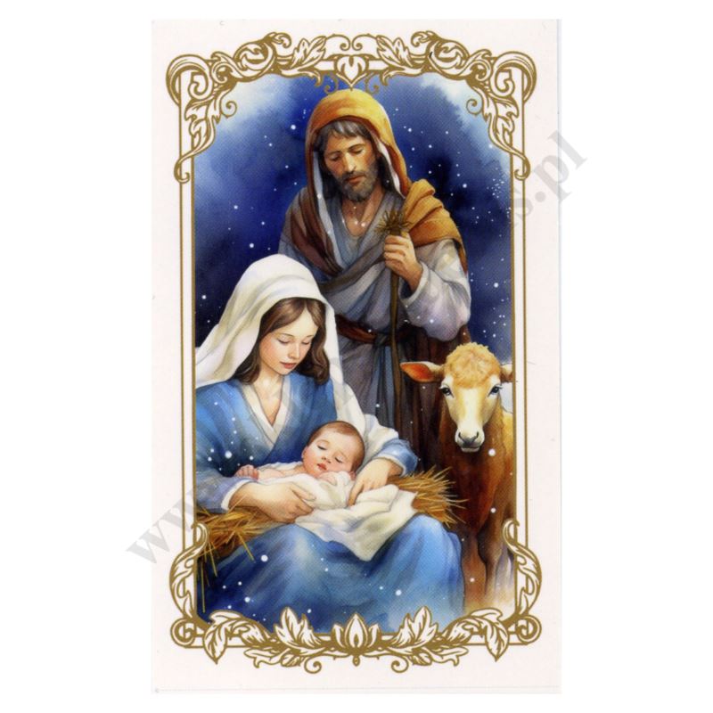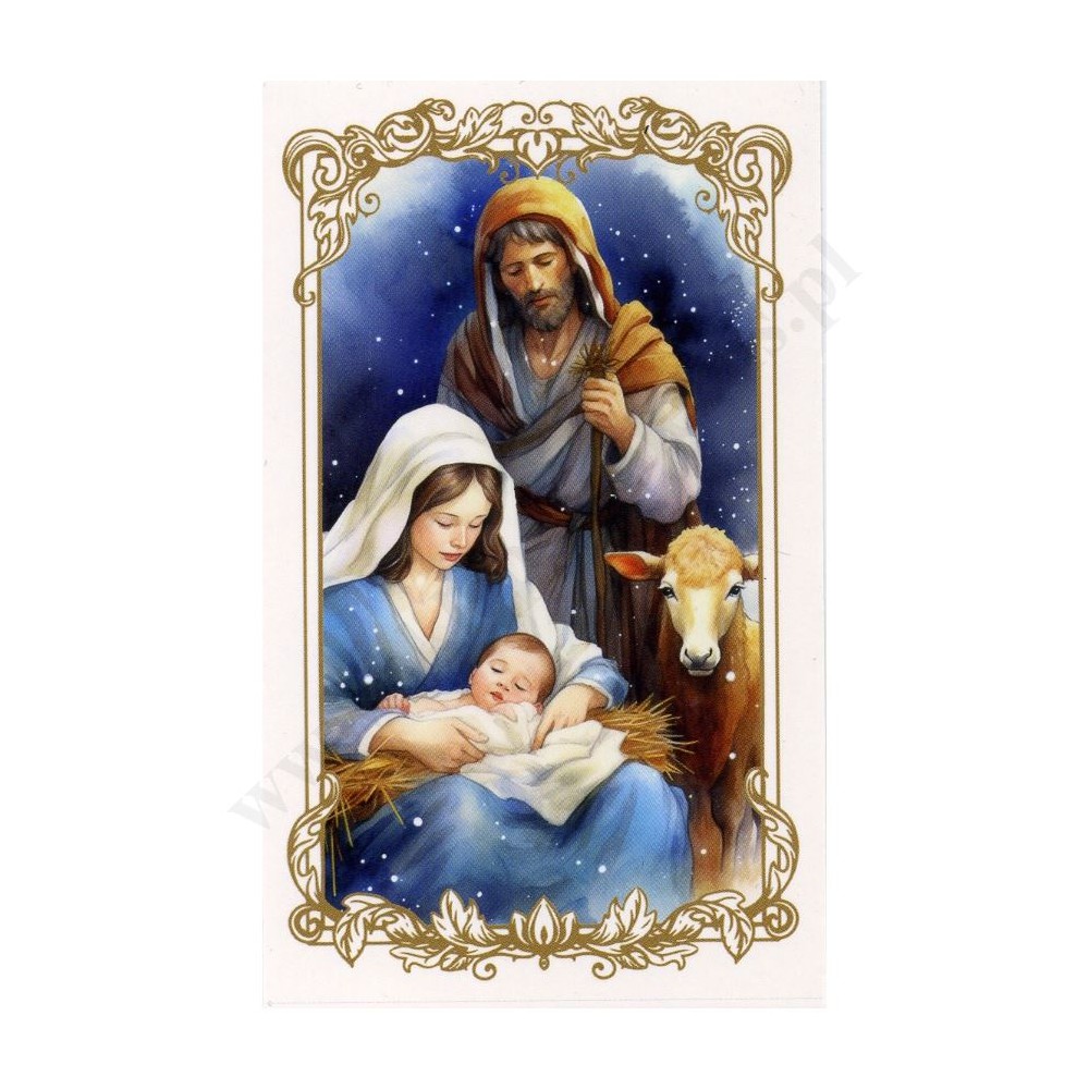 Obrazek kolędowy lakierowany o wymiarach 6.5 x 11 cm. Na rewersie obrazka pamiątkowy tekst. W paczce znajduje się 100 szt. obrazków jednego wzoru. Sprzedaż na paczki po 100 szt.