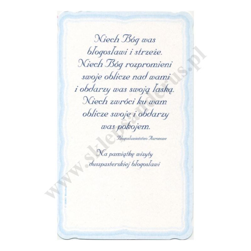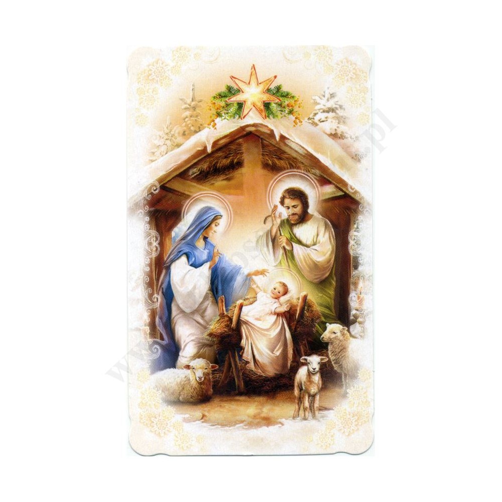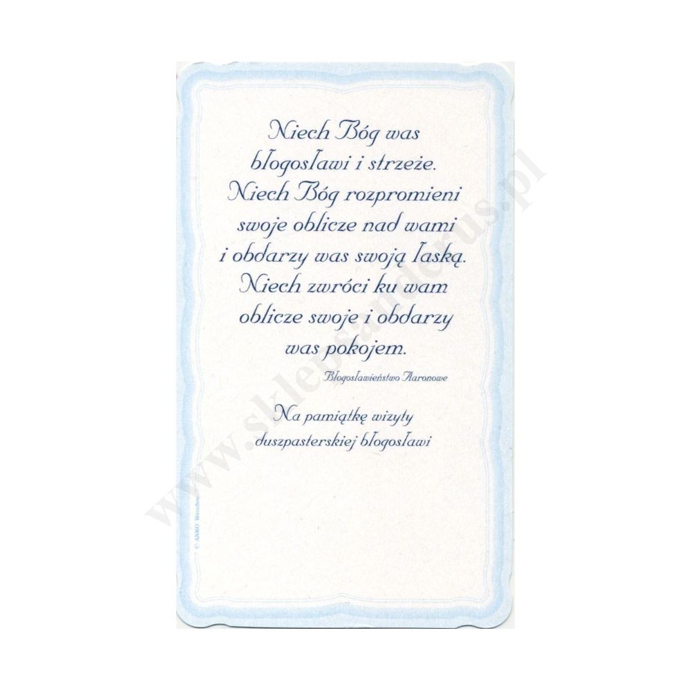 Obrazek kolędowy lakierowany o wymiarach 6,2 cm x 10.5 cm. Na rewersie obrazka pamiątkowy tekst. W paczce znajduje się 100 szt. obrazków jednego wzoru. Sprzedaż na paczki po 100 szt.