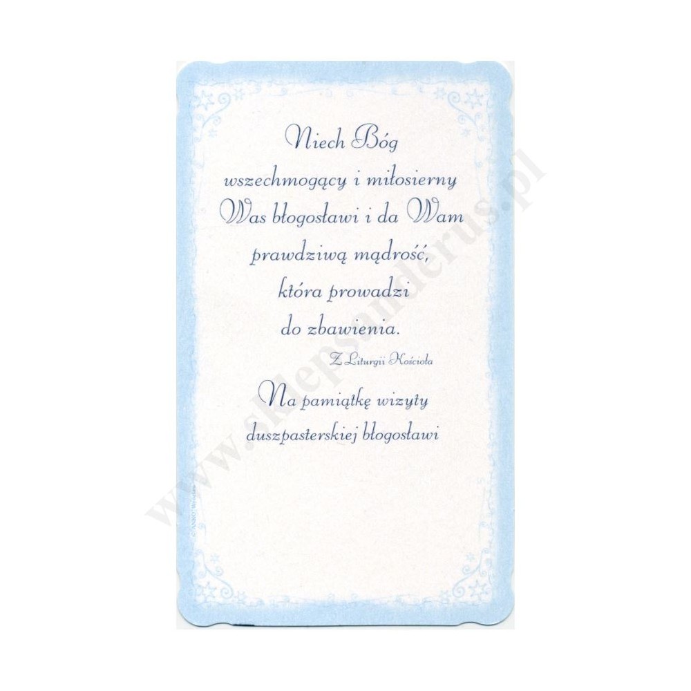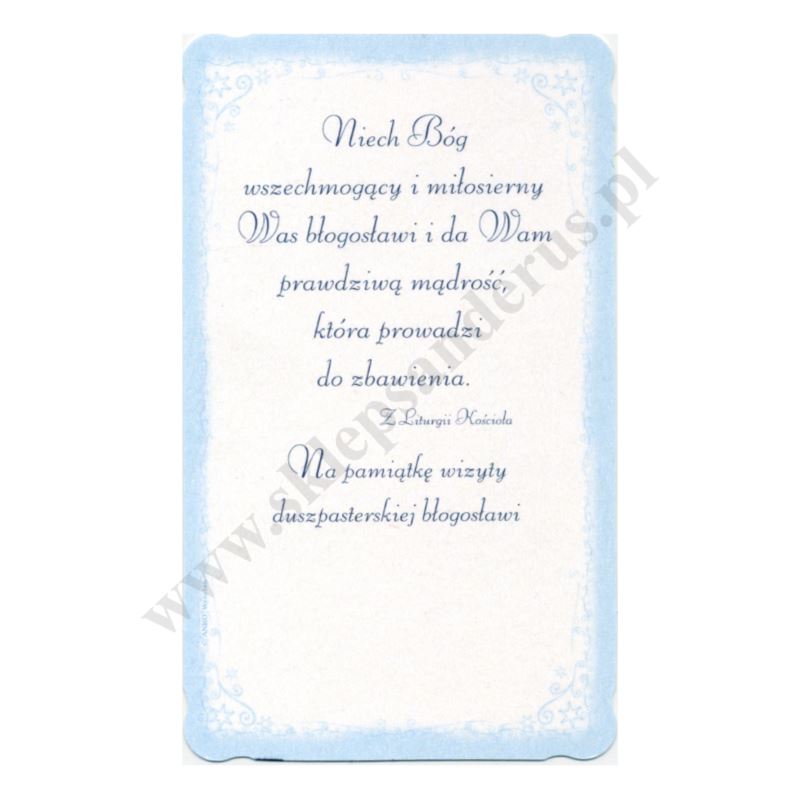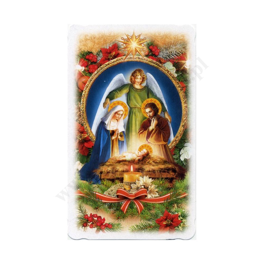 Obrazek kolędowy lakierowany o wymiarach 6,2 cm x 10.5 cm. Na rewersie obrazka pamiątkowy tekst. W paczce znajduje się 100 szt. obrazków jednego wzoru. Sprzedaż na paczki po 100 szt.