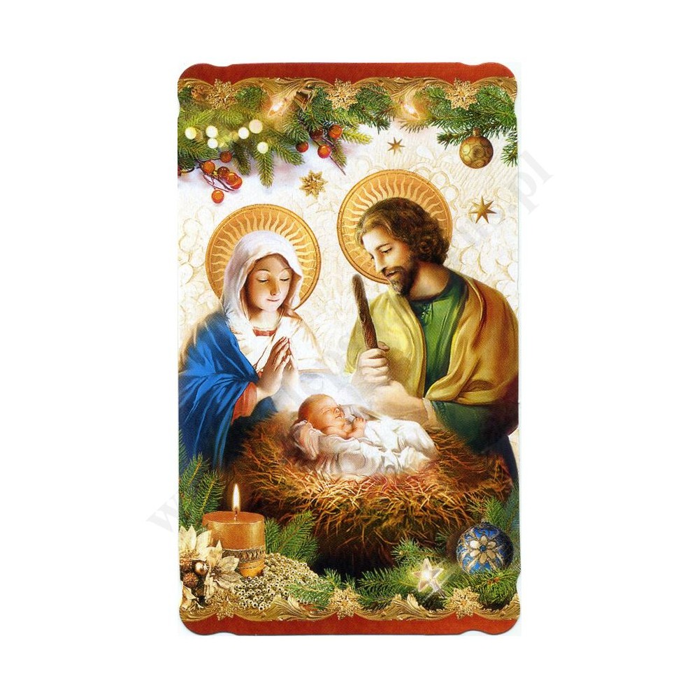 Obrazek kolędowy lakierowany o wymiarach 10.5 cm x 6.2 cm. Na rewersie obrazka pamiątkowy tekst. W paczce znajduje się 100 szt. obrazków jednego wzoru. Sprzedaż na paczki po 100 szt.