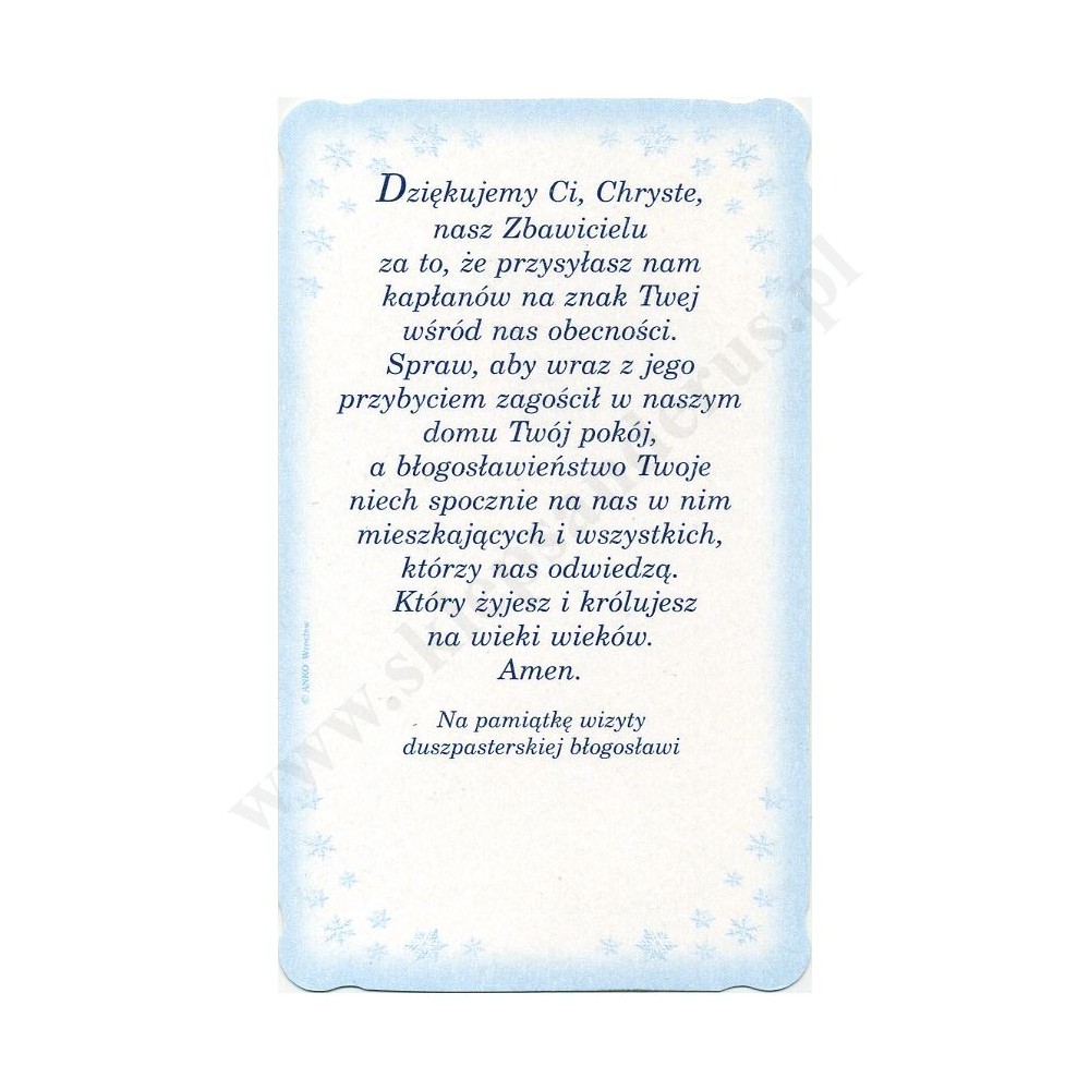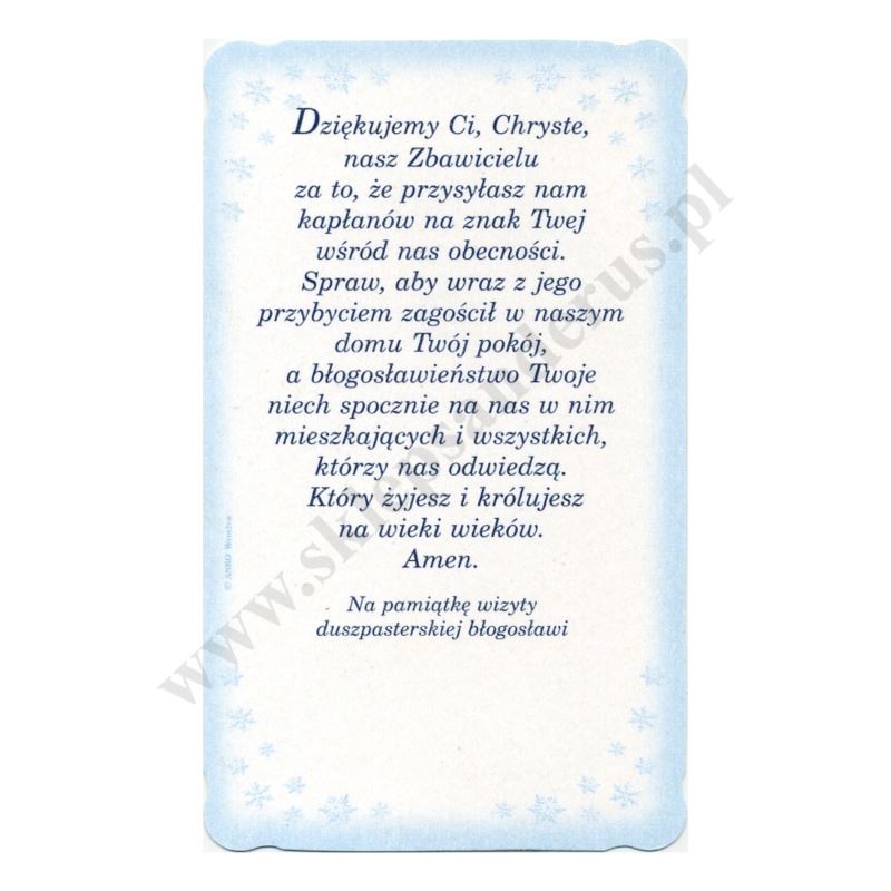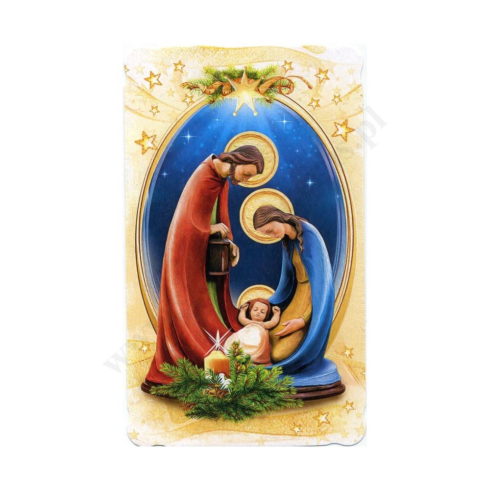 Obrazek kolędowy lakierowany o wymiarach 6,2 cm x 10.5 cm. Na rewersie obrazka pamiątkowy tekst. W paczce znajduje się 100 szt. obrazków jednego wzoru. Sprzedaż na paczki po 100 szt.