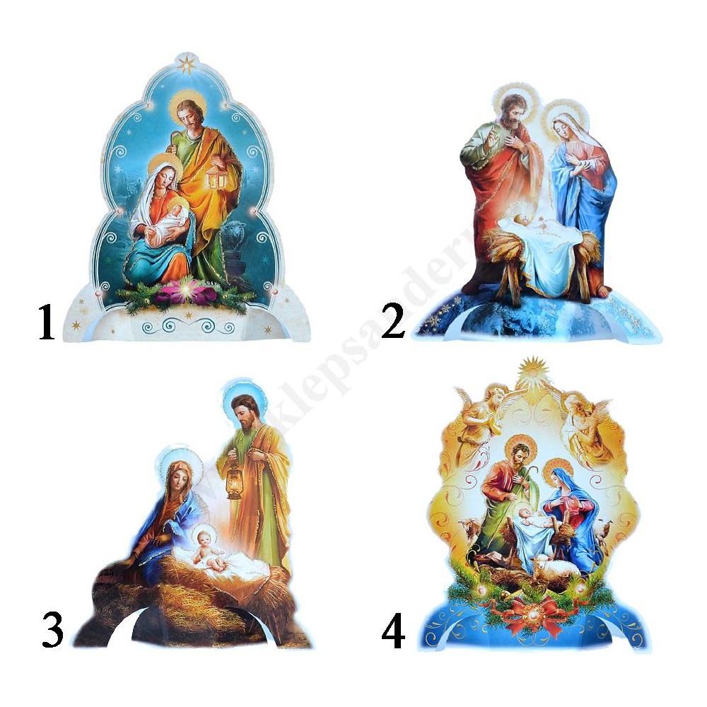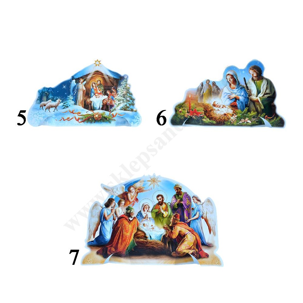 Szopka bożonarodzeniowa papierowa, lakierowana i brokatowana. Sprzedaż w miksie wzorów.