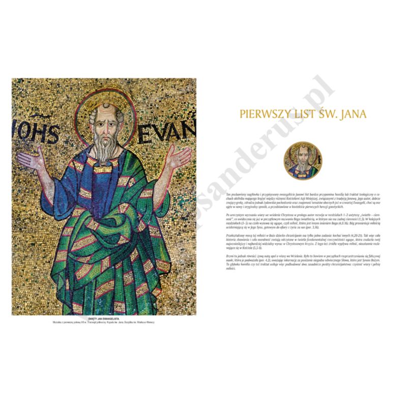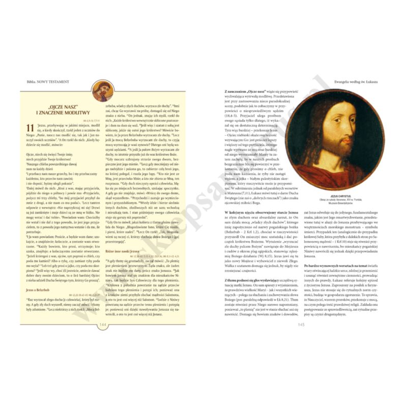 To wyjątkowe wydanie Nowego Testamentu jest również bogato ilustrowane reprodukcjami dzieł sztuki, ale również wspaniałymi fotografiami przybliżającymi historie biblijne.