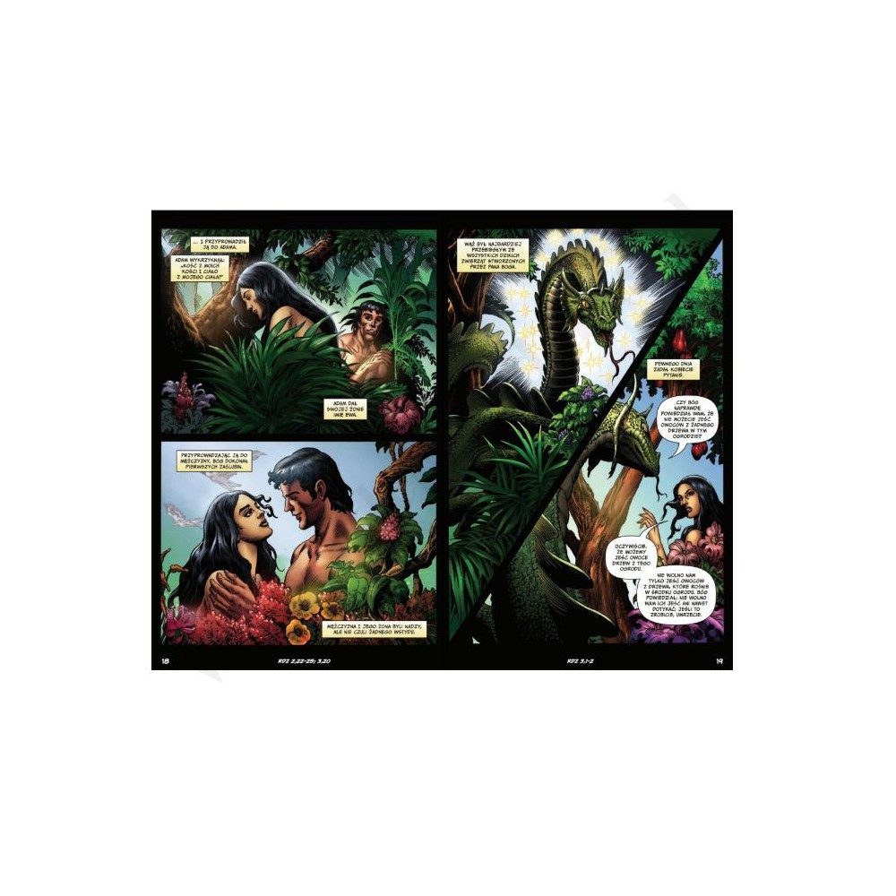 Stworzona przez najznakomitszych artystów pracujących dla DC Comics i Marvel, ta komiksowa wersja Biblii jest wizualnie zachwycającą podróżą po Piśmie Świętym, przyciągającą błyskotliwą, dramatyczną, porywającą grafiką. To pełne życia i artystycznego polotu spojrzenie na Stworzenie, historię Izraela, życie Jezusa i dzieje pierwotnego Kościoła.