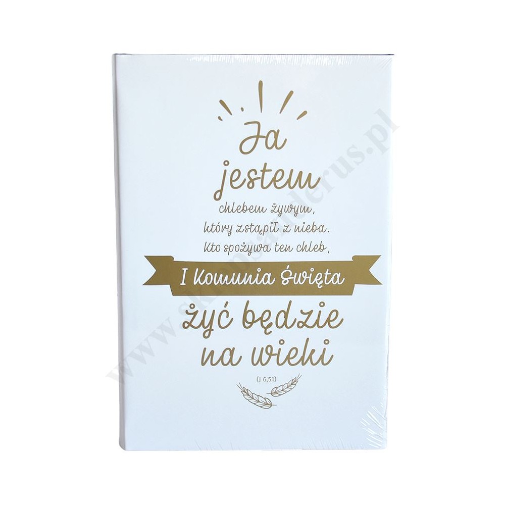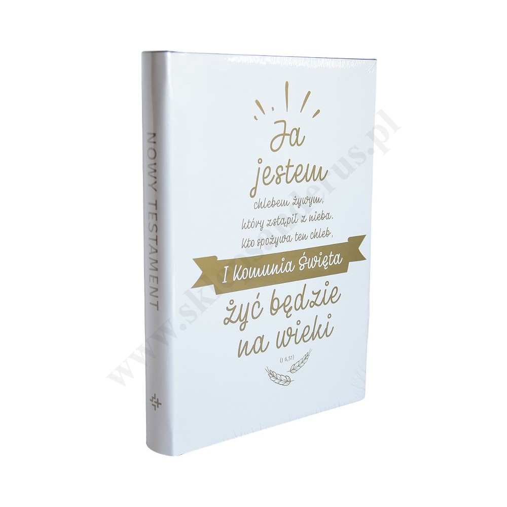 Nowy Testament z infografikami w wyjątkowej obwolucie komunijnej, dzięki której doskonale nadaje się na prezent z okazji I Komunii Świętej.