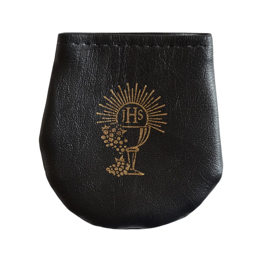 Etui na różaniec wykonane ze skaju zapinane na rzepę. Szerokość 8 cm, wysokość 8.5 cm.
